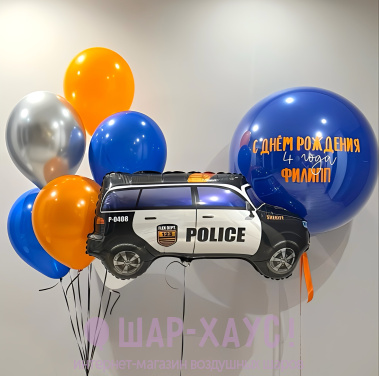 • 1 Фольгированный шар "Машина Полиция" (84 см, Flex)