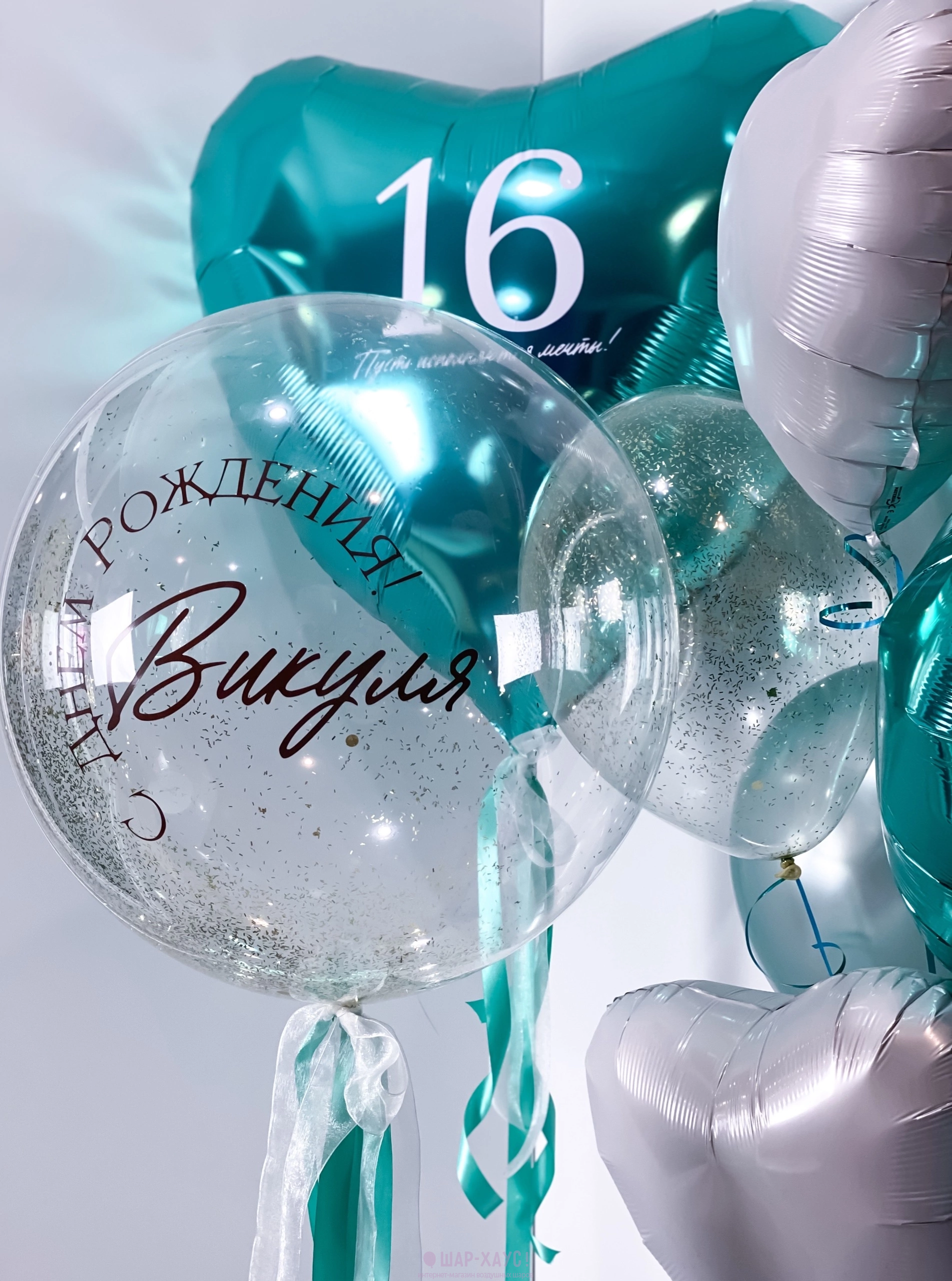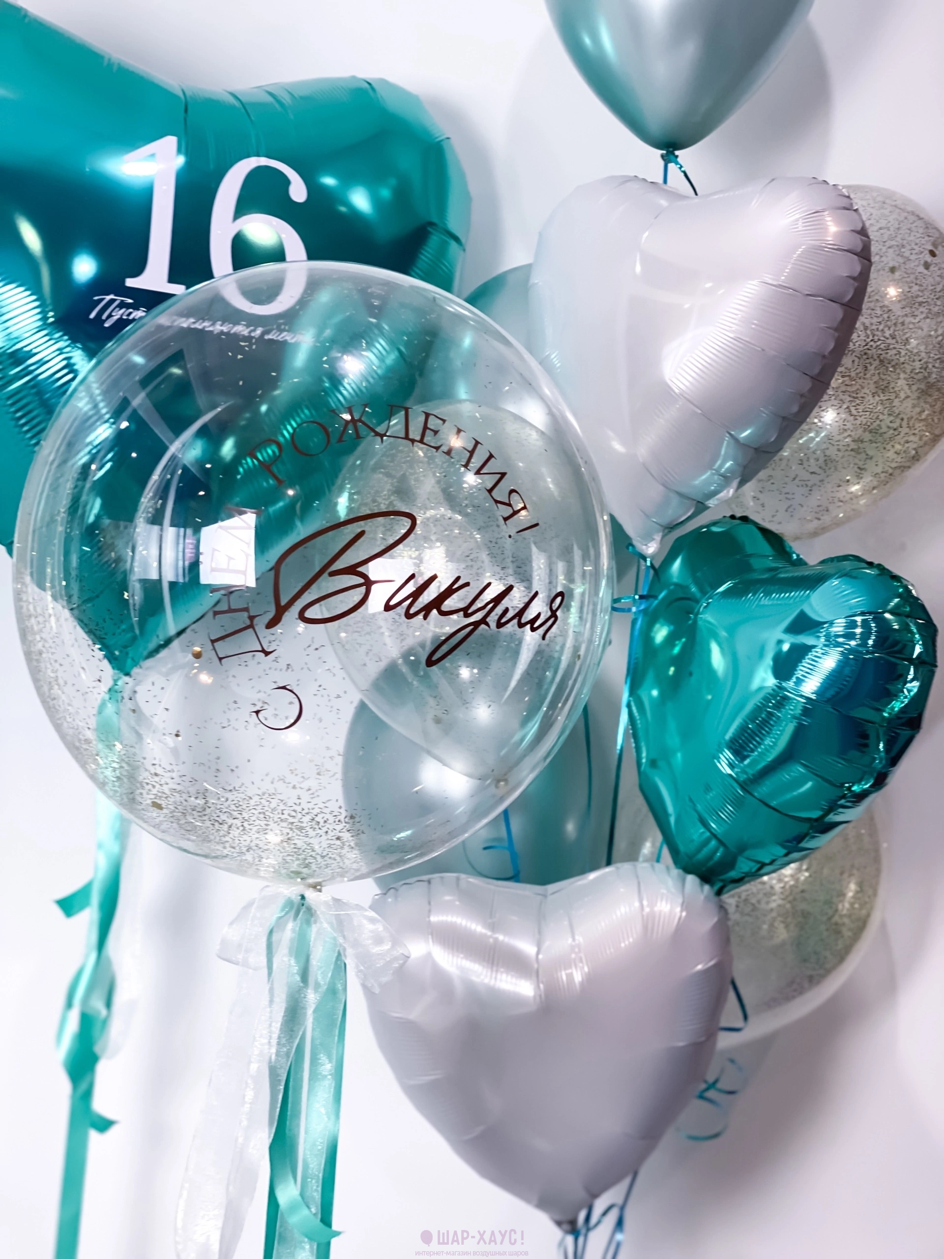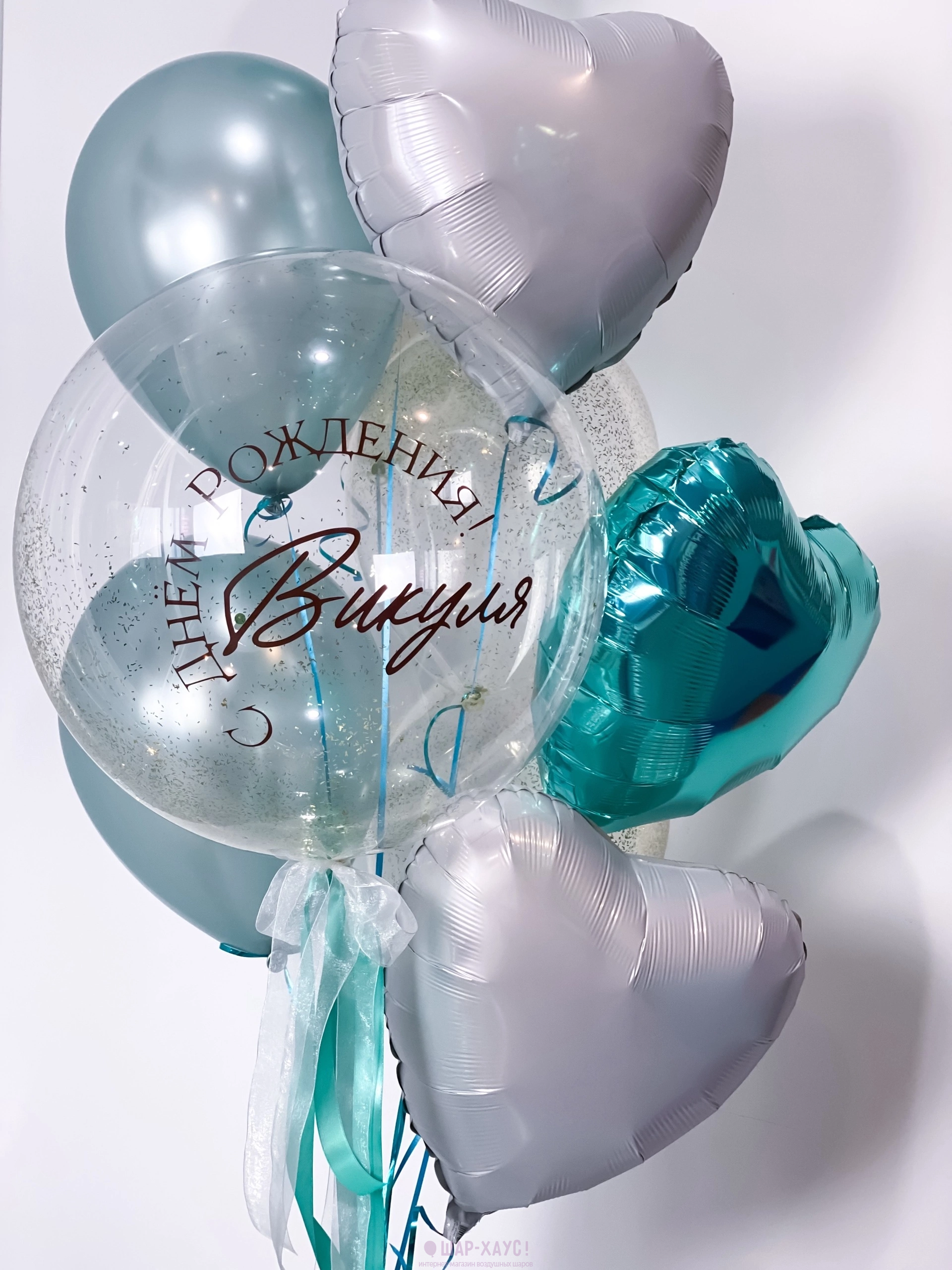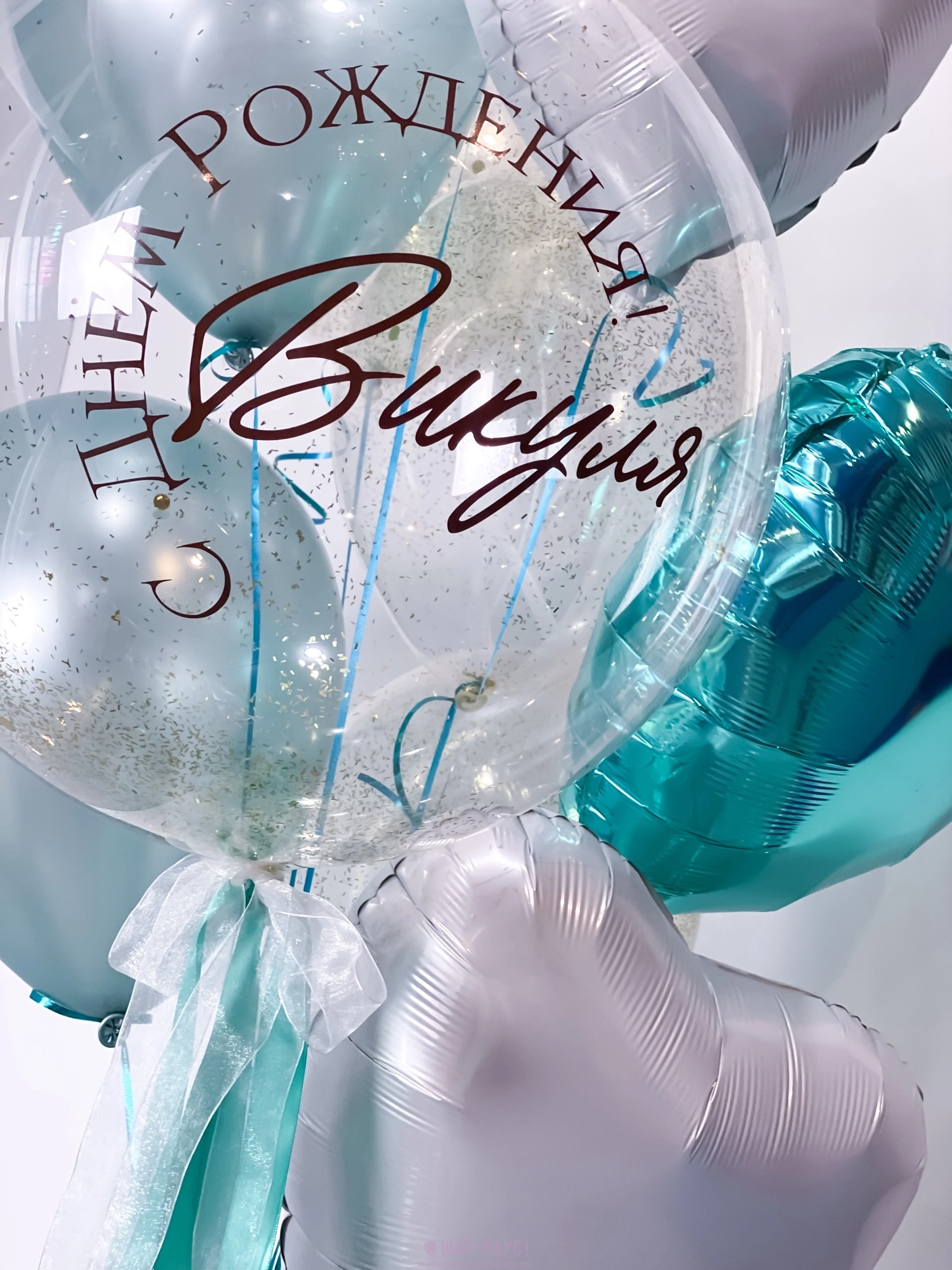 • 1 Воздушный шар Бабл с конфетти-крошкой внутри и надписью на выбор (50 см)