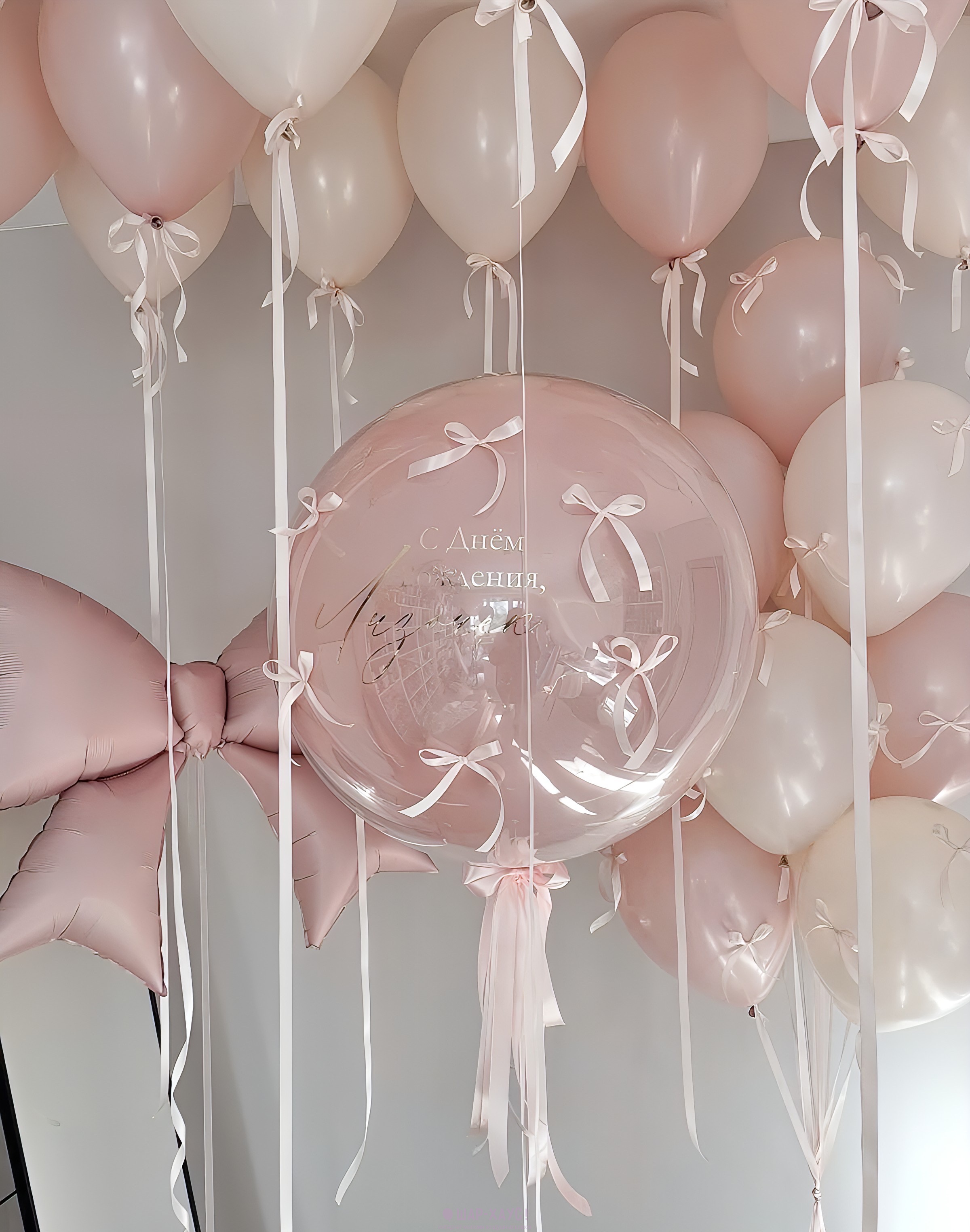 • 10 Латексных воздушных шаров под потолок на атласных лентах