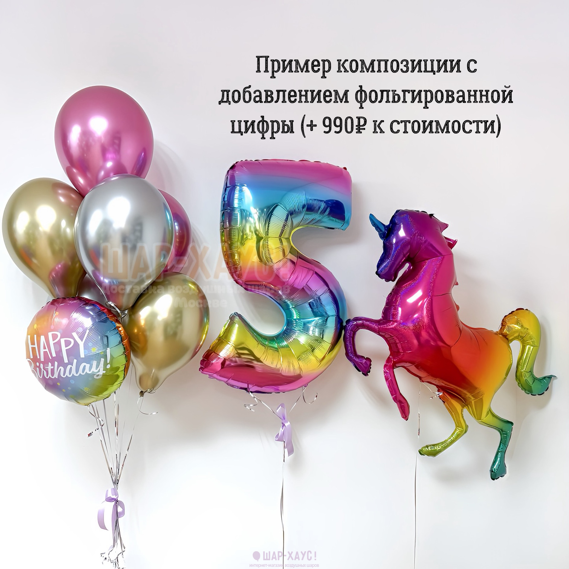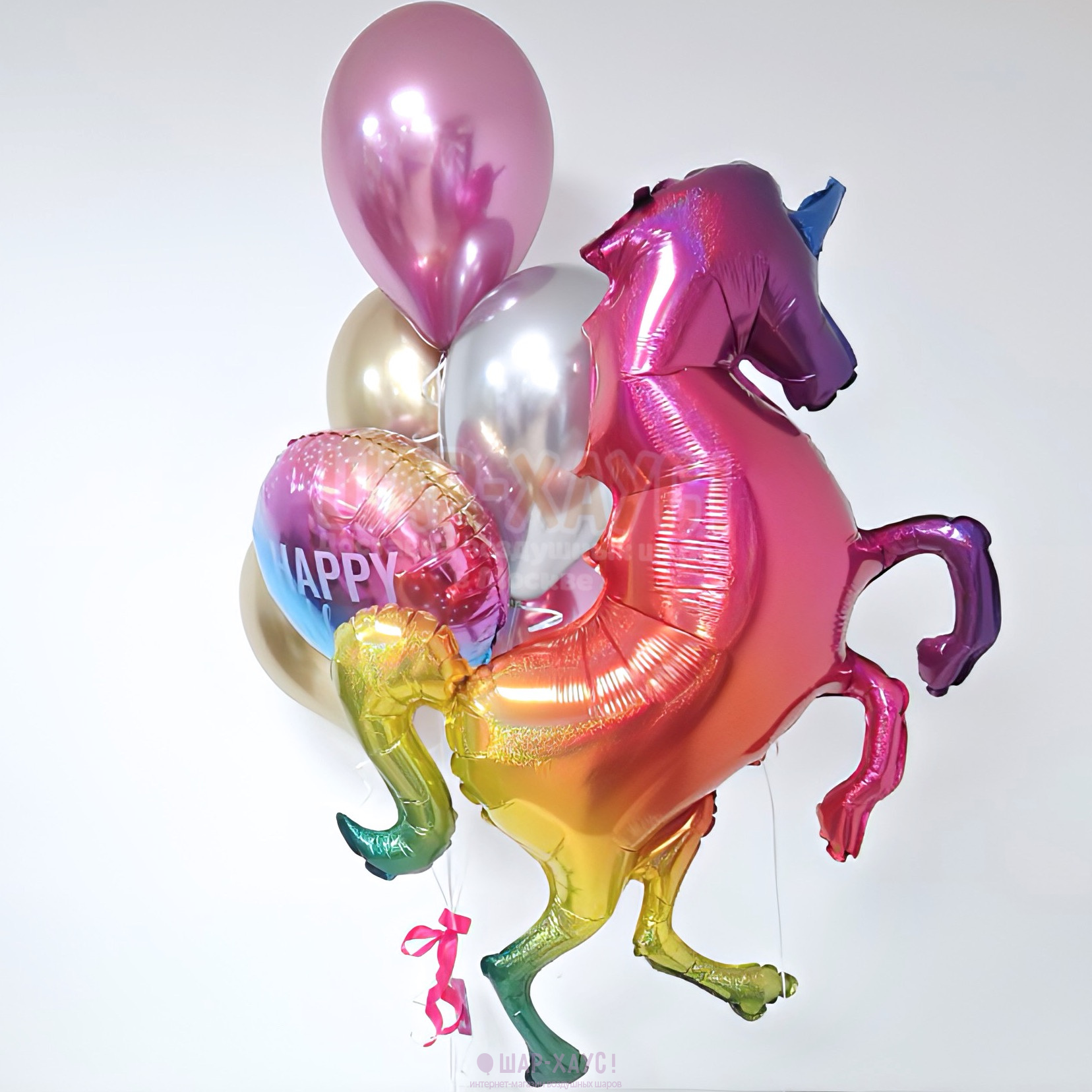 • Фольгированная фигура с гелием "Единорог градиент" (135 см)