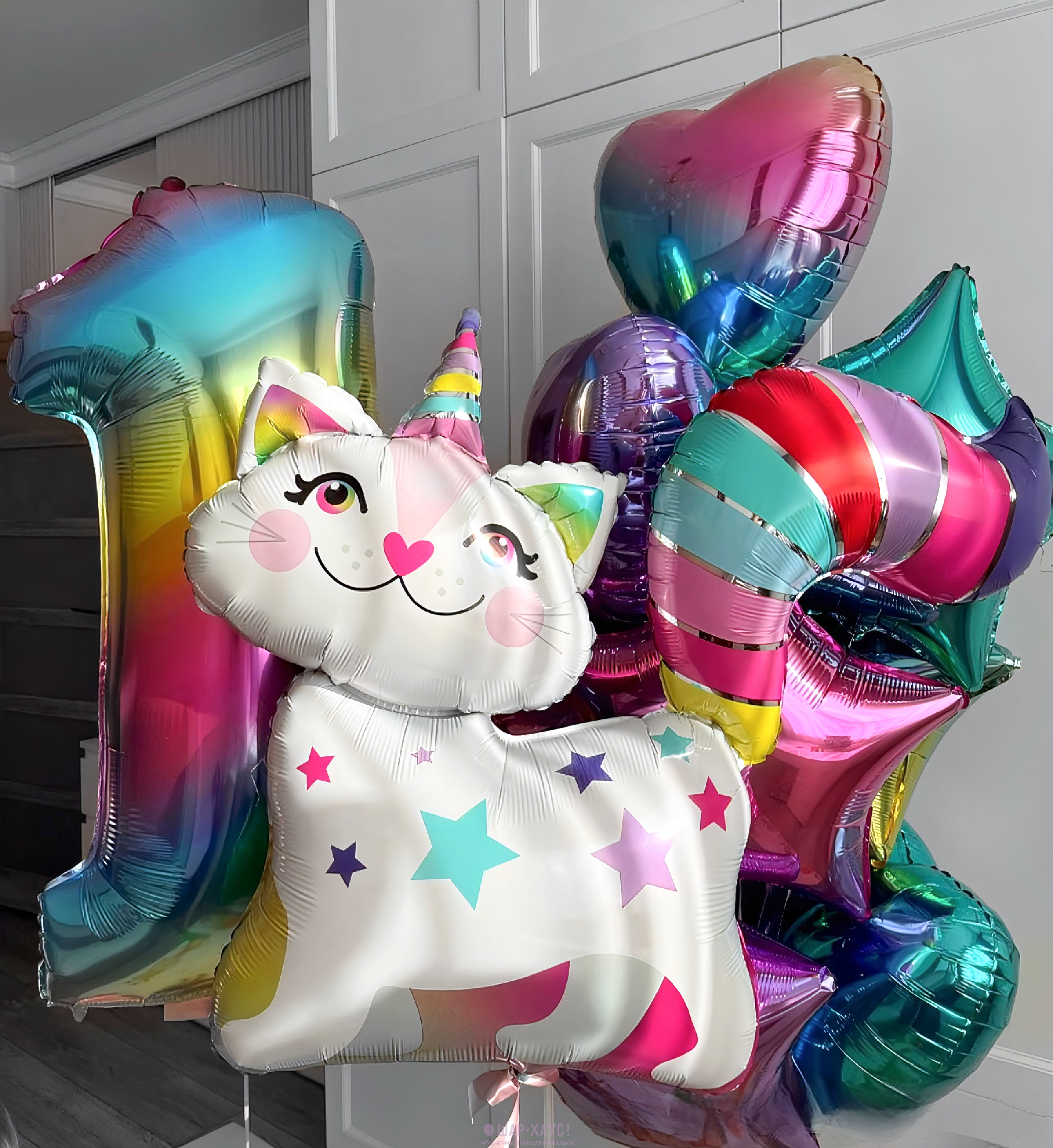 Композиция из шаров "Радужный кот"