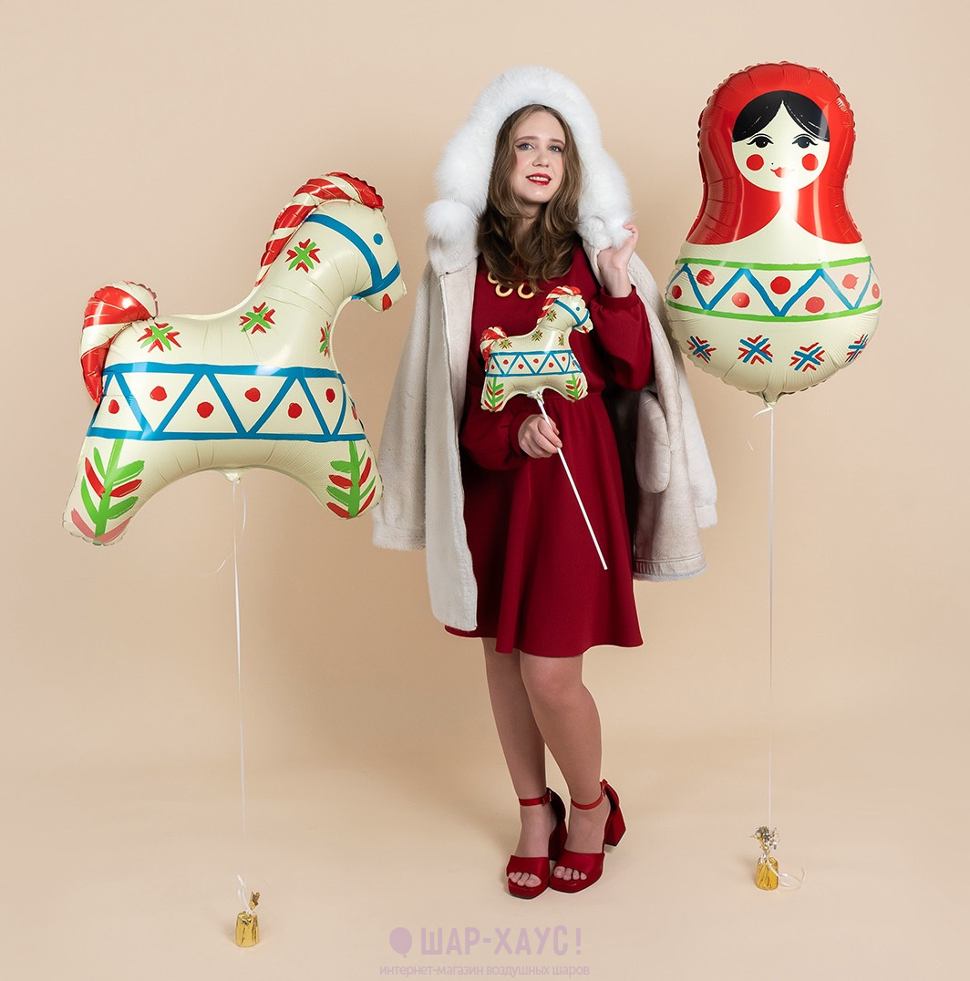 • 1 Фольгированная фигура "Лошадка Русский узор" (81 см)