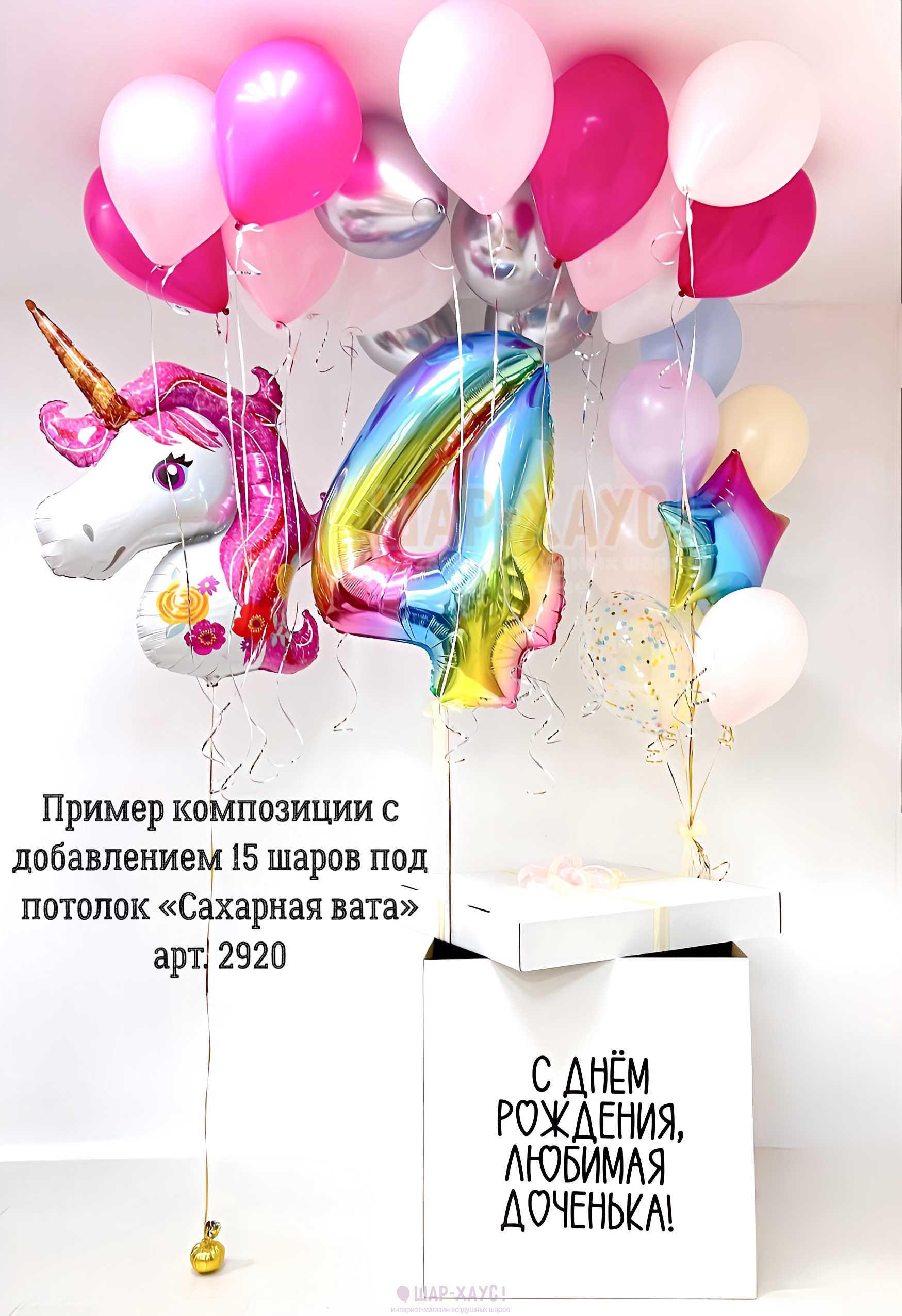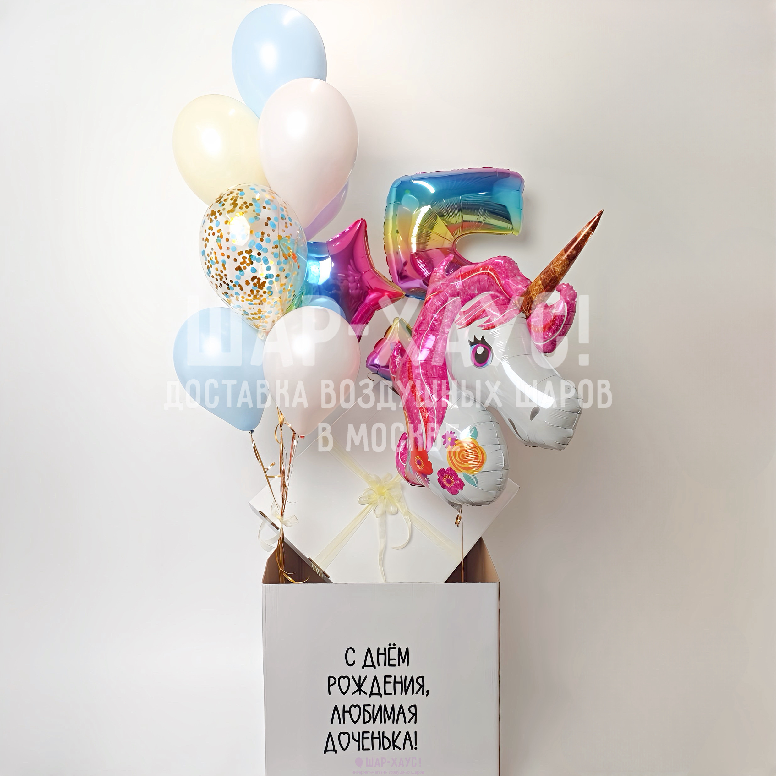 Композиция из шаров с коробкой "Единорог"