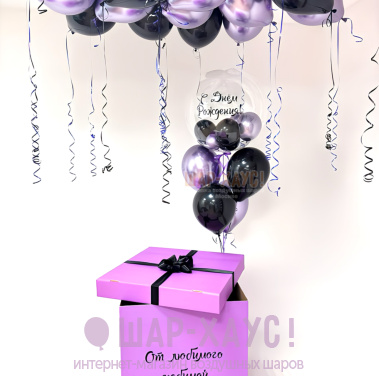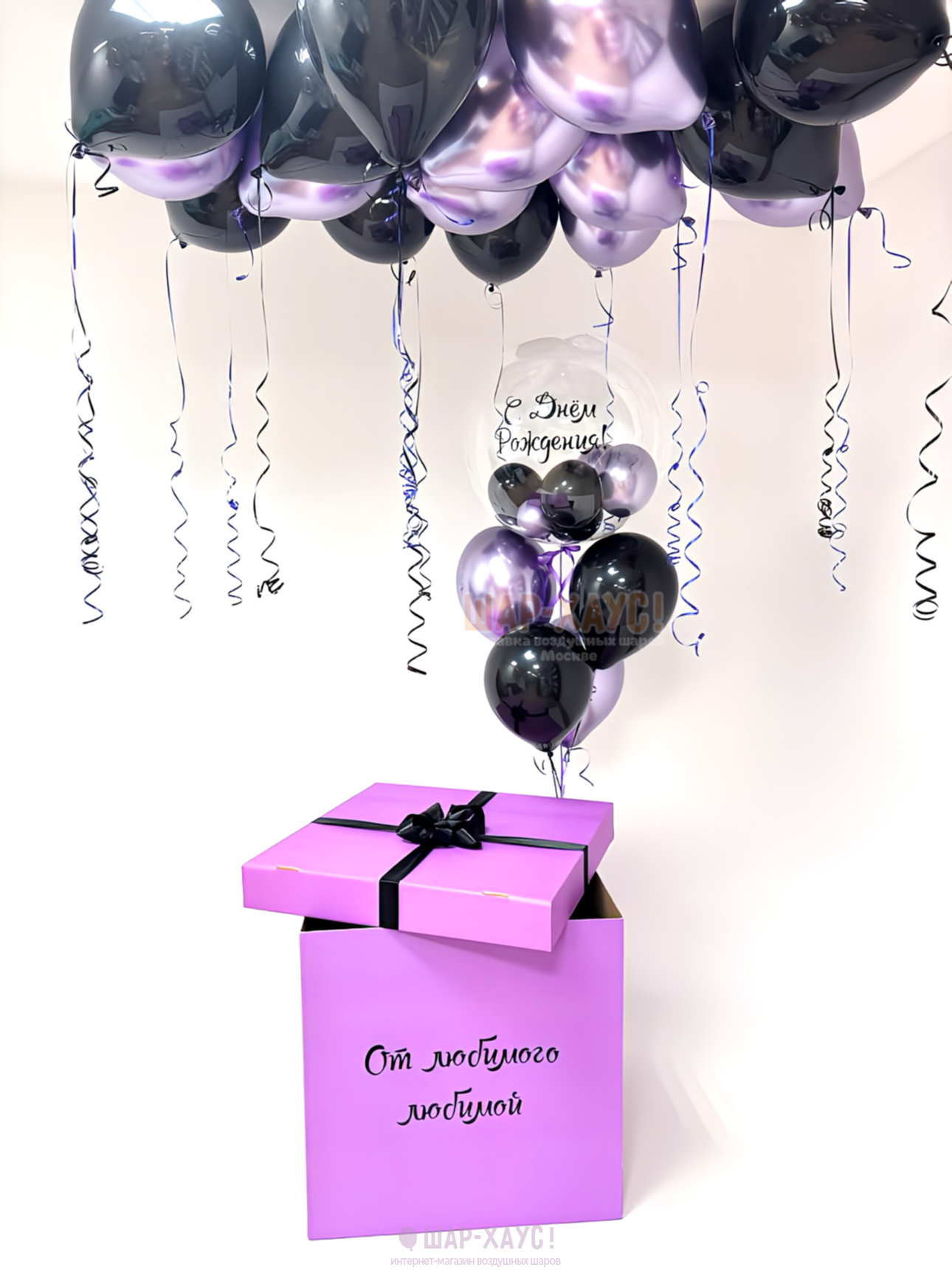 Композиция из шаров с коробкой «Стильный фиолетовый»
