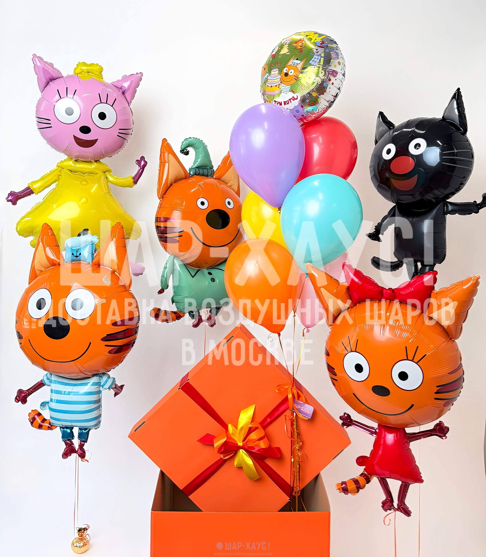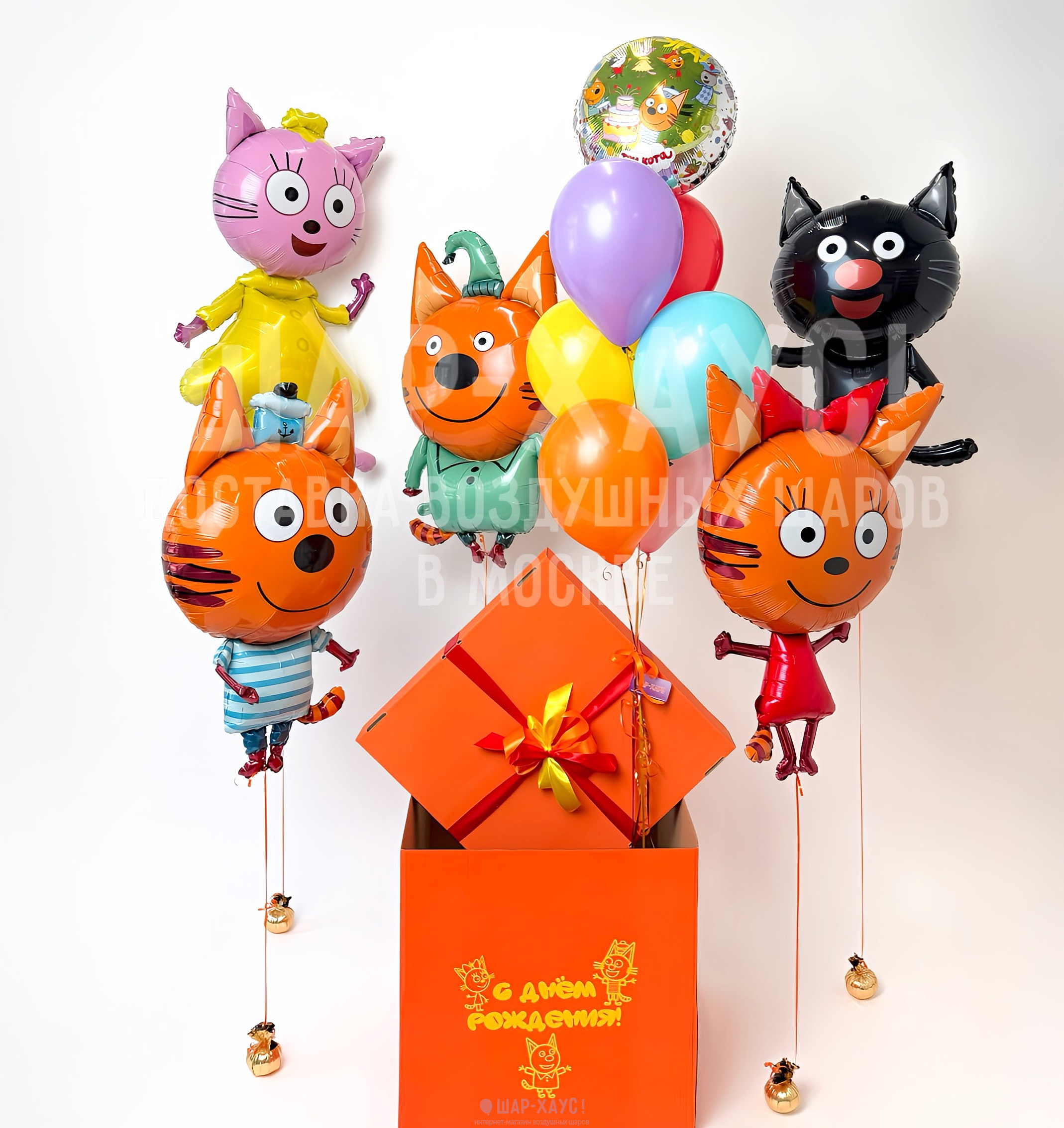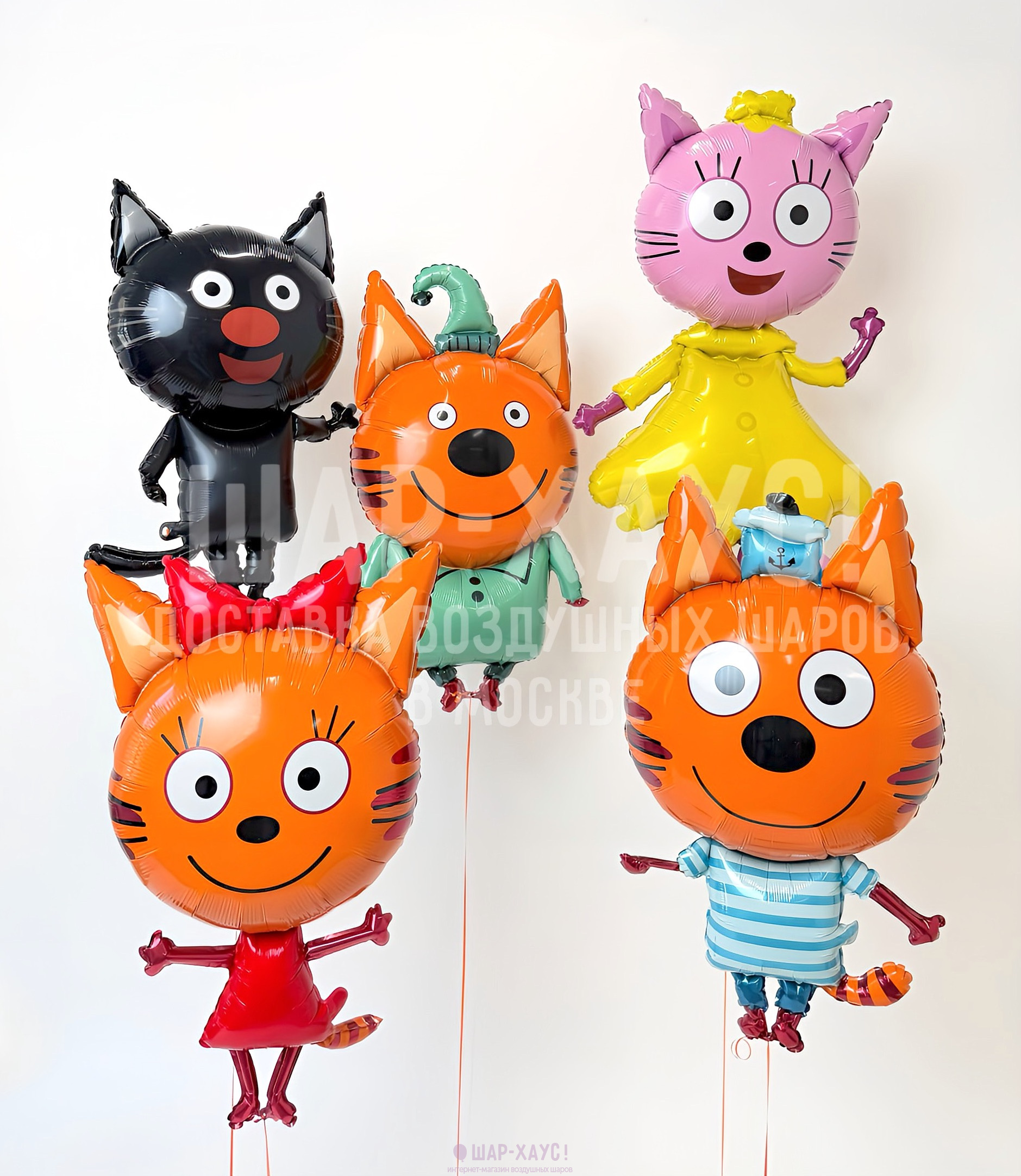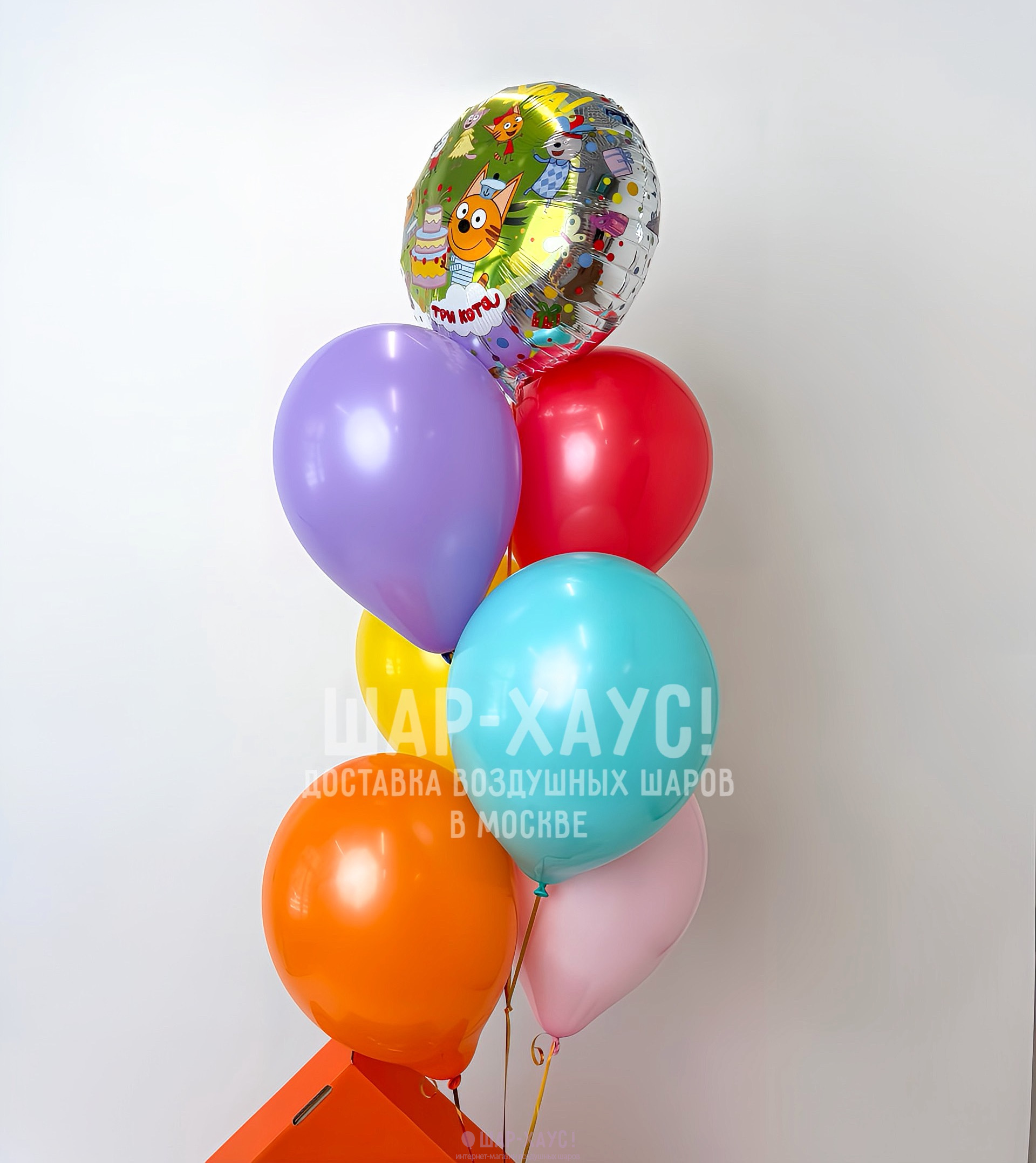 • 1 Фольгированный круг с рисунком персонажей "Три кота" (45 см)