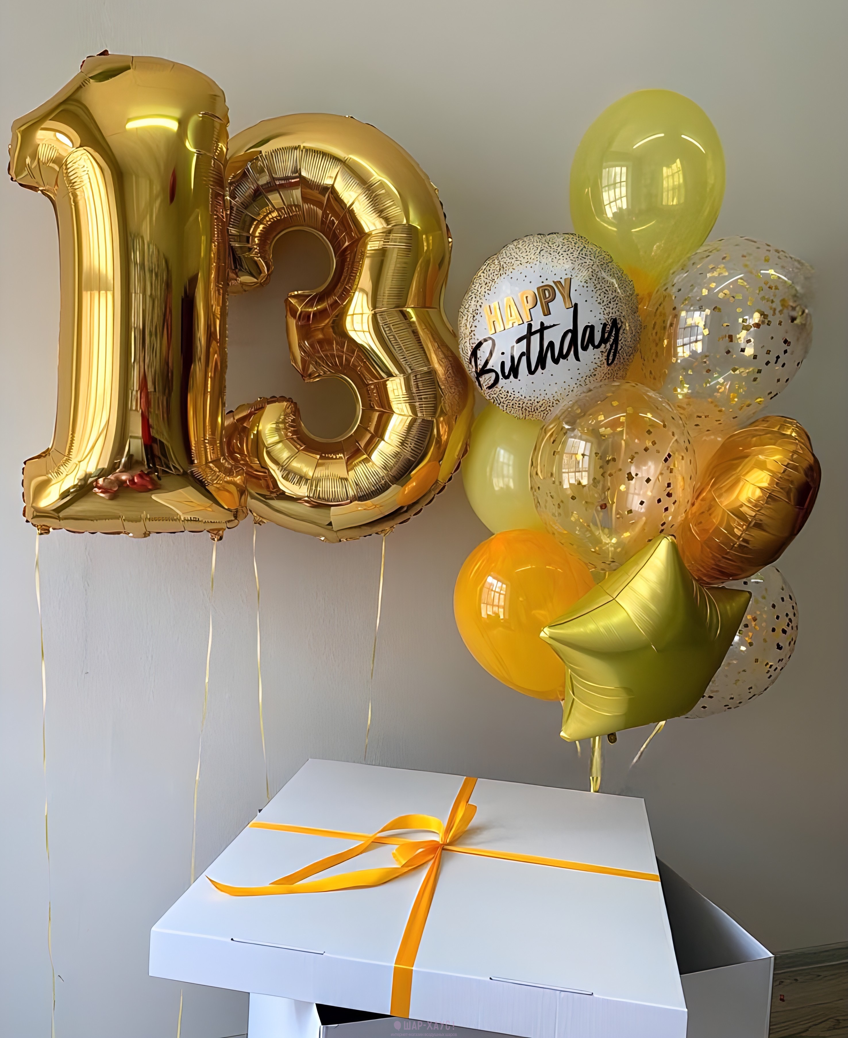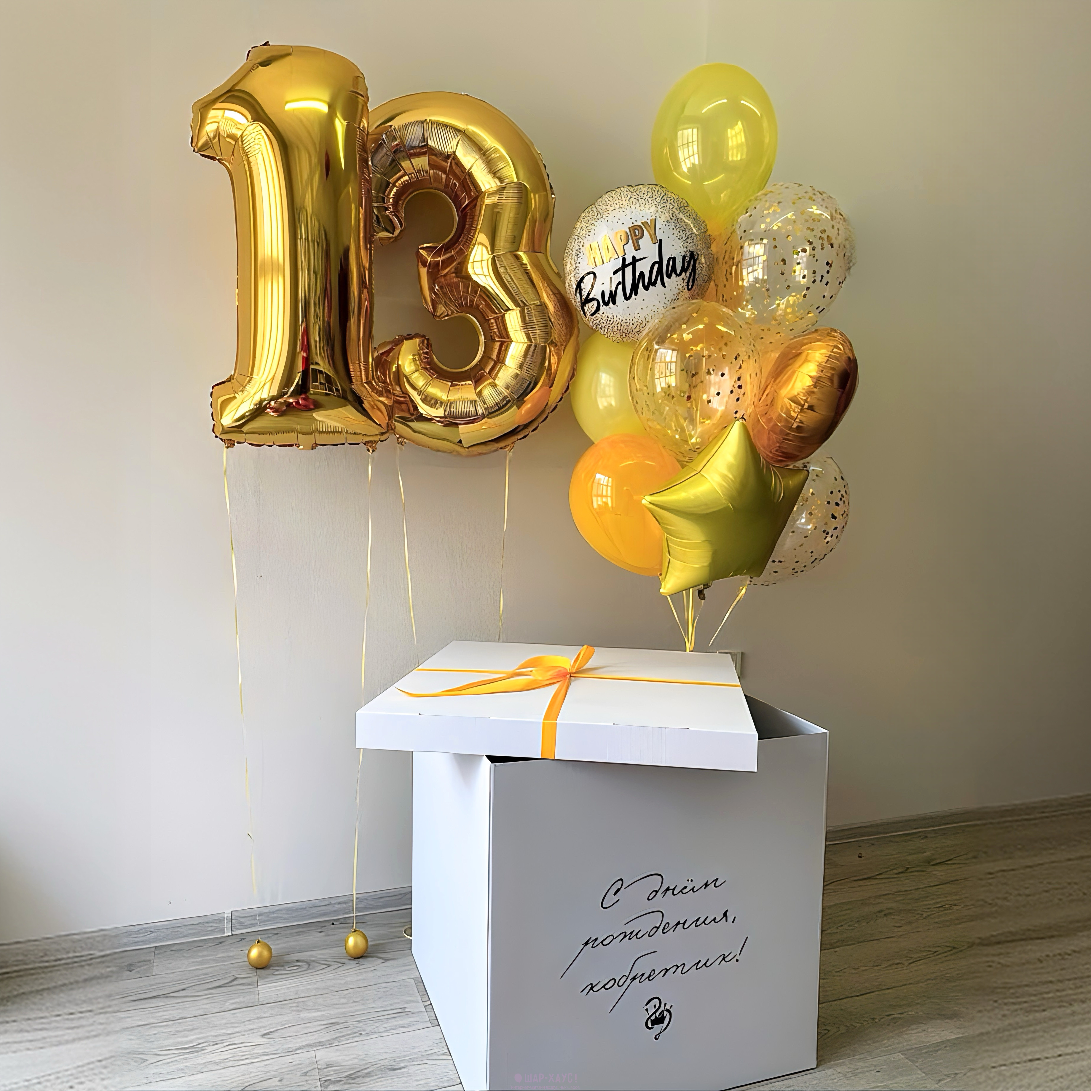 Вы можете изменить состав и цвет шариков в данной композиции, а также надпись на коробке.