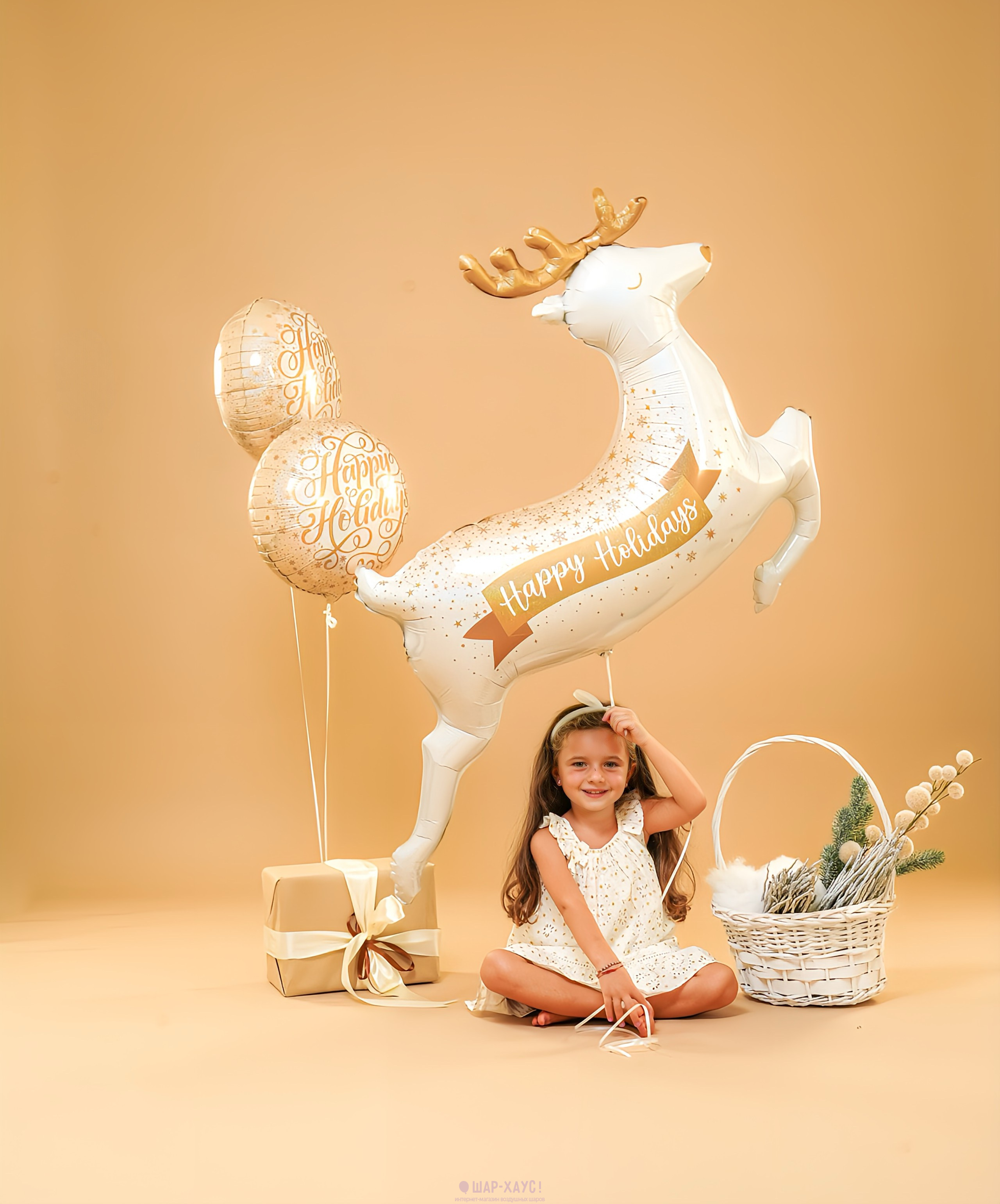• 1 Фольгированная фигура "Новогодний олень голография" (122 см)