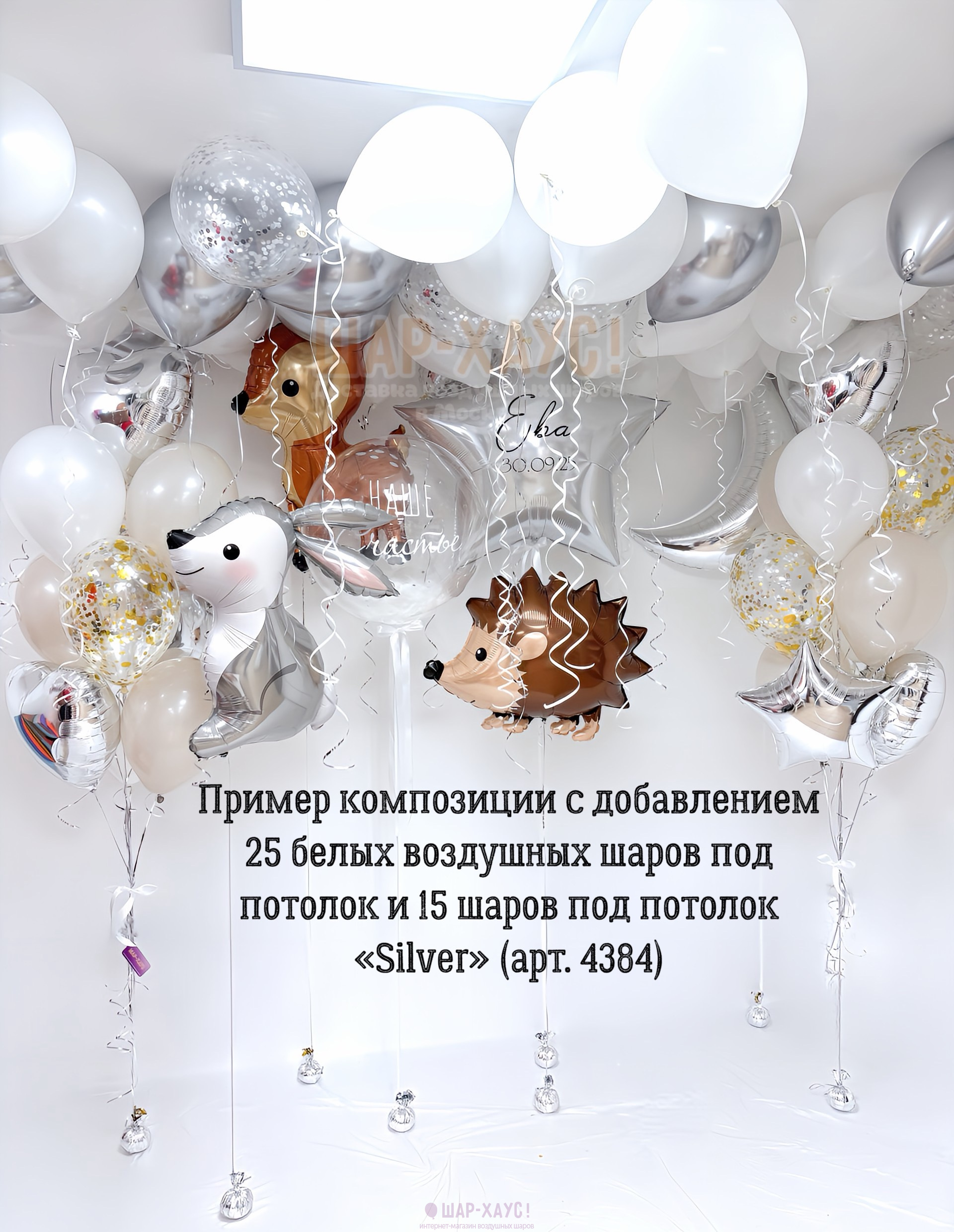 Мы можем привезти данные шарики как в виде композиции, так и в распущенном виде(в пакете), которые вы в последствии можете выпустить под потолок или украсить ими комнату самостоятельно.