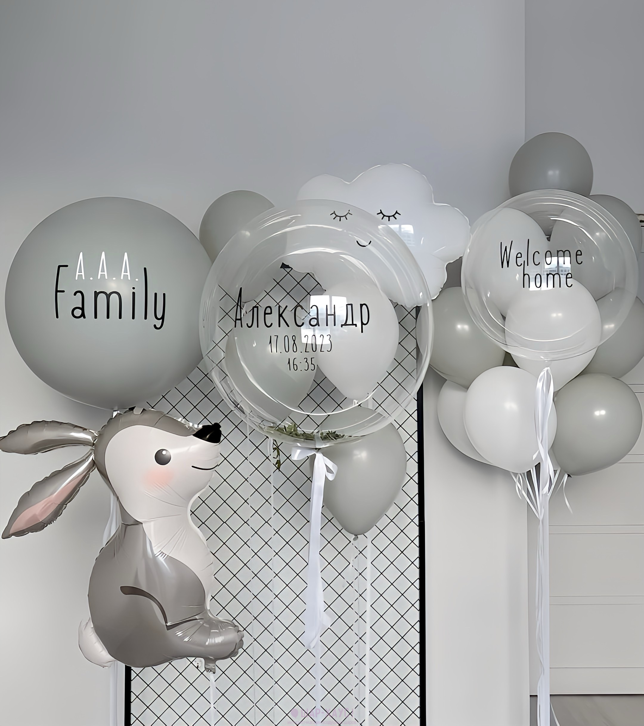 • 1 Воздушный шар Бабл с надписью на выбор (45 см)