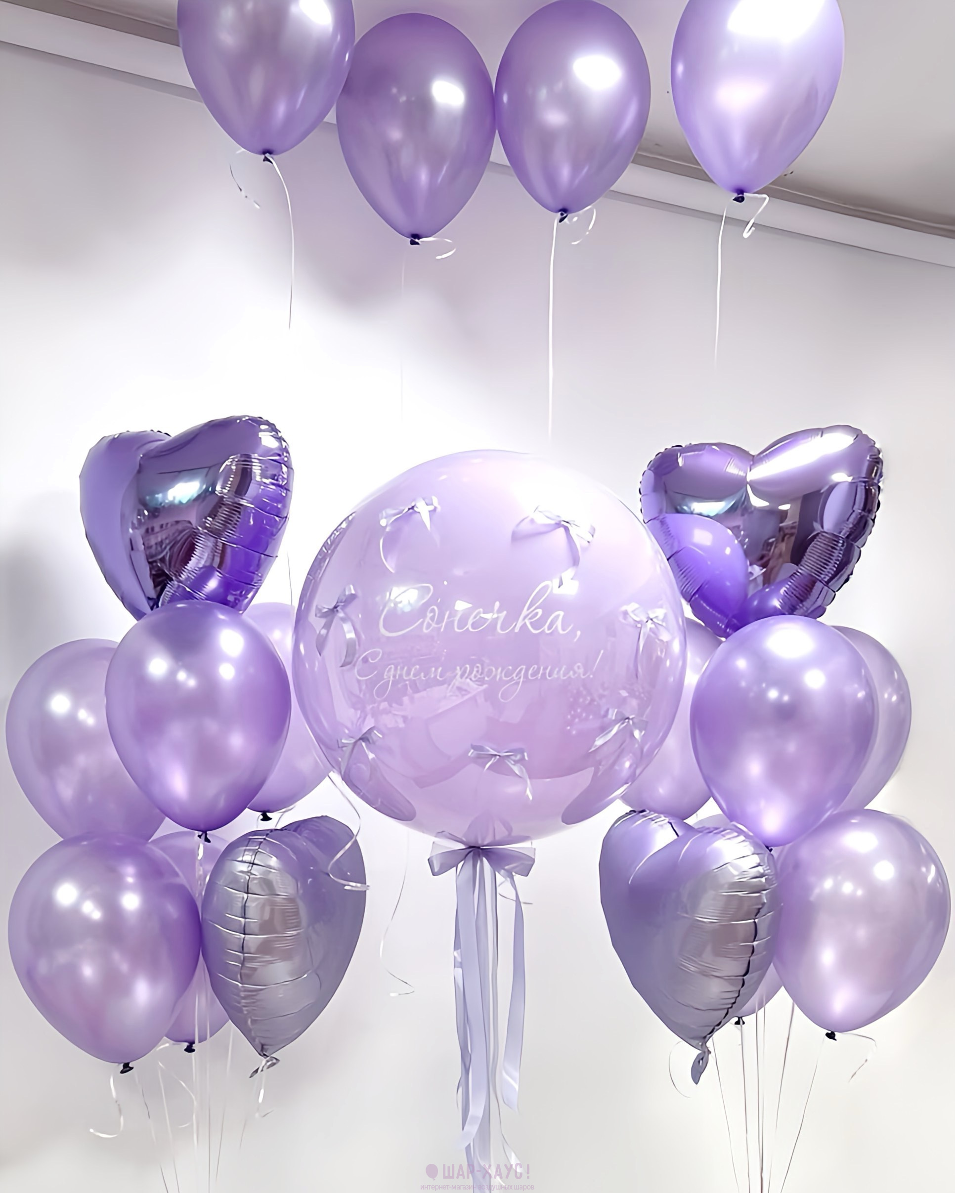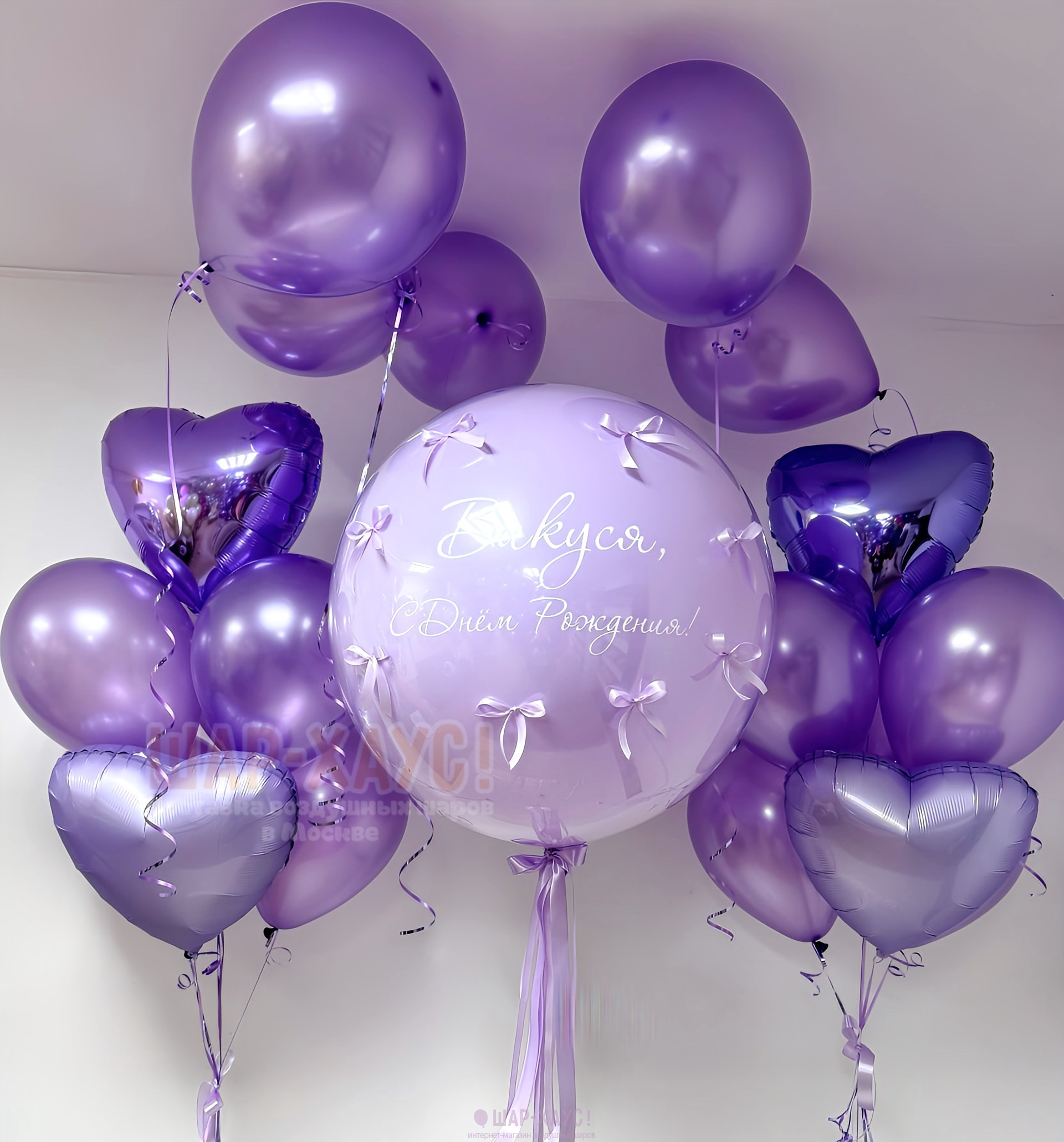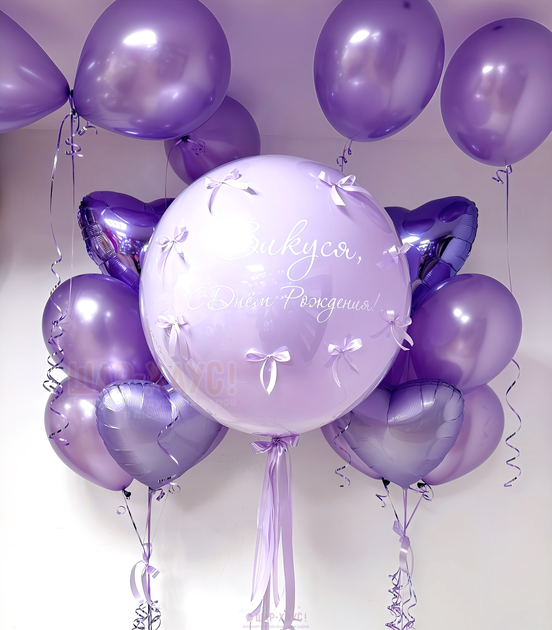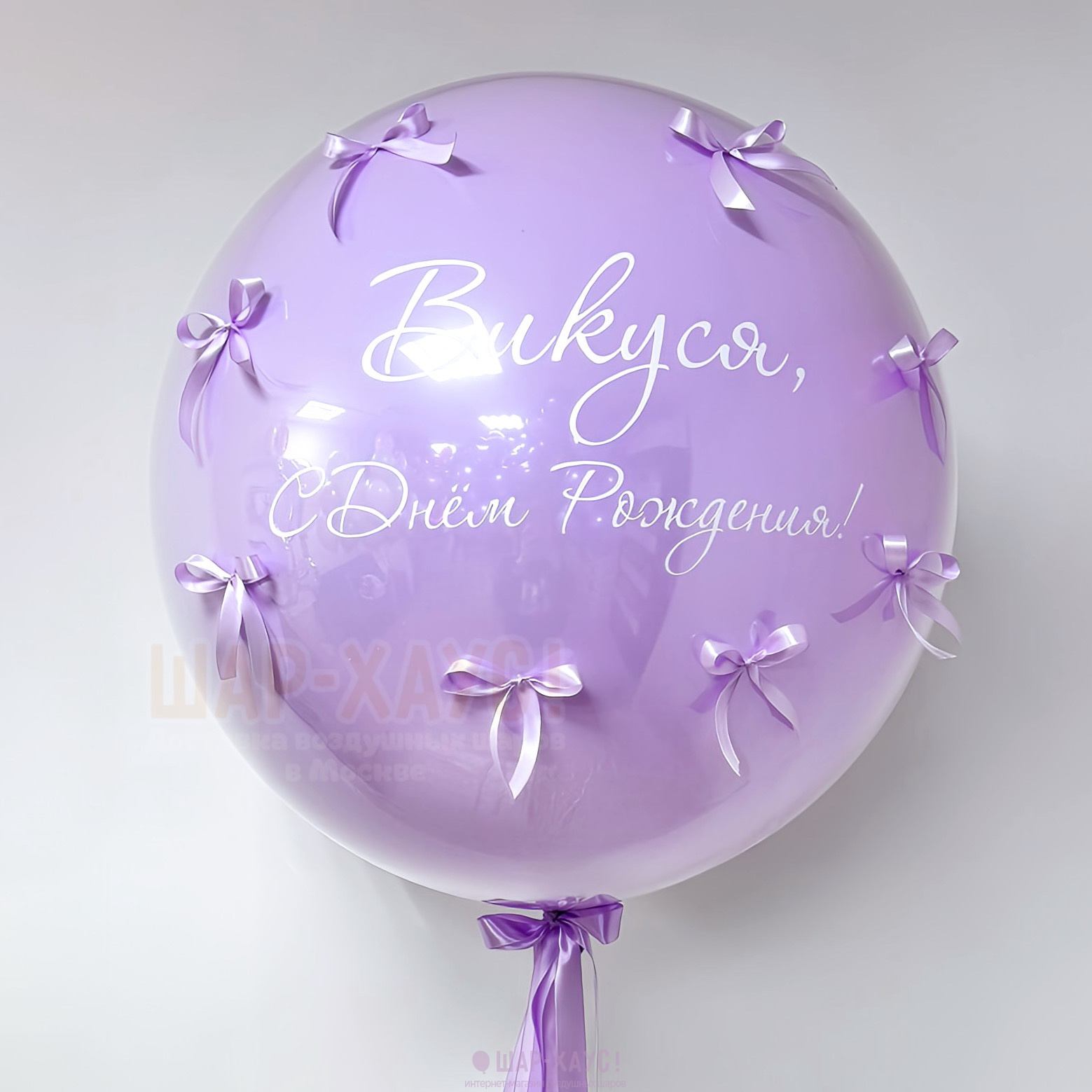• 1 Стеклянный воздушный шар Дабл Стафф с надписью на выбор и бантиками (61 см)