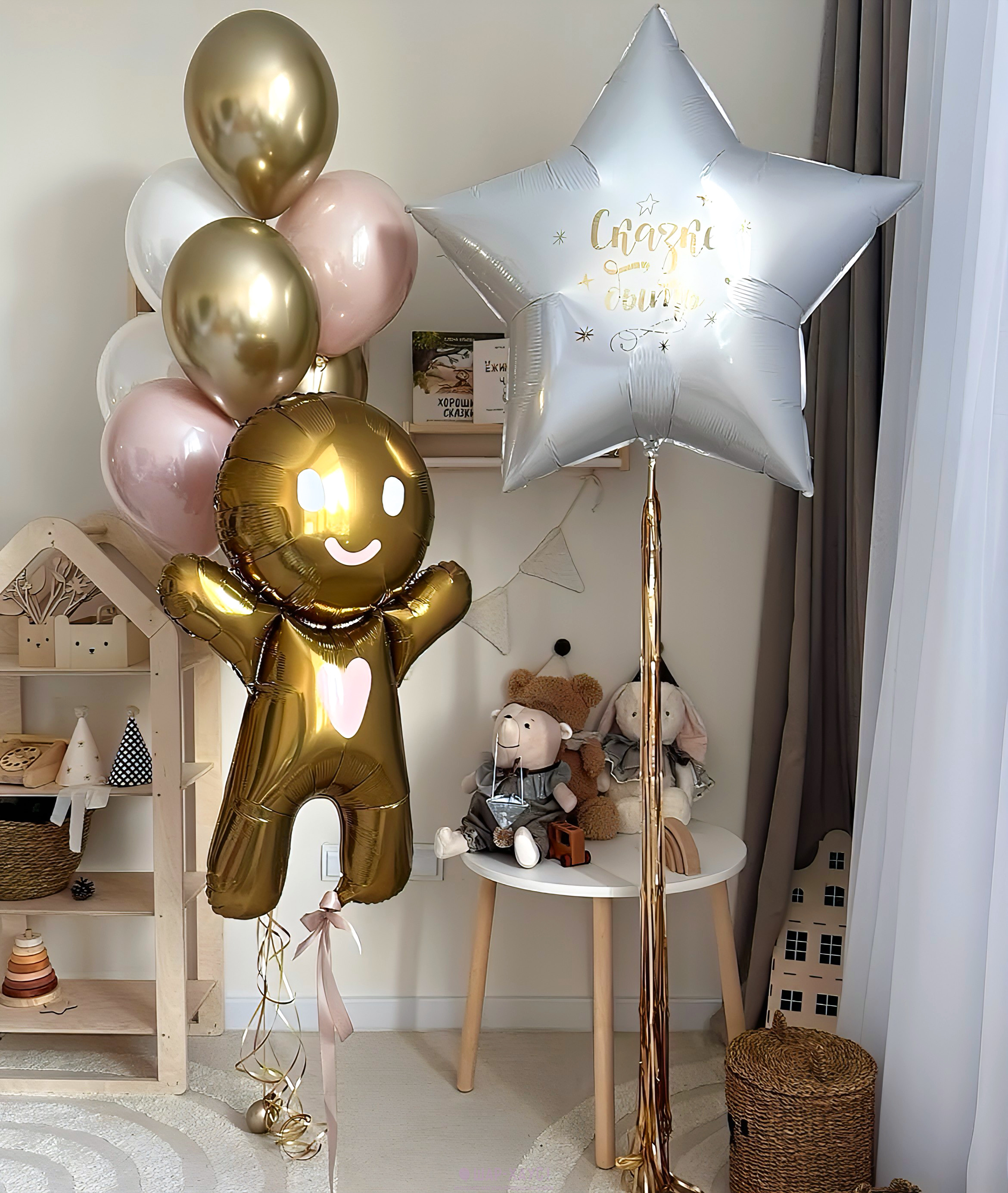 • 1 Фольгированная фигура "Пряничный человечек" (86 см, PartyDeco 1207-4380)