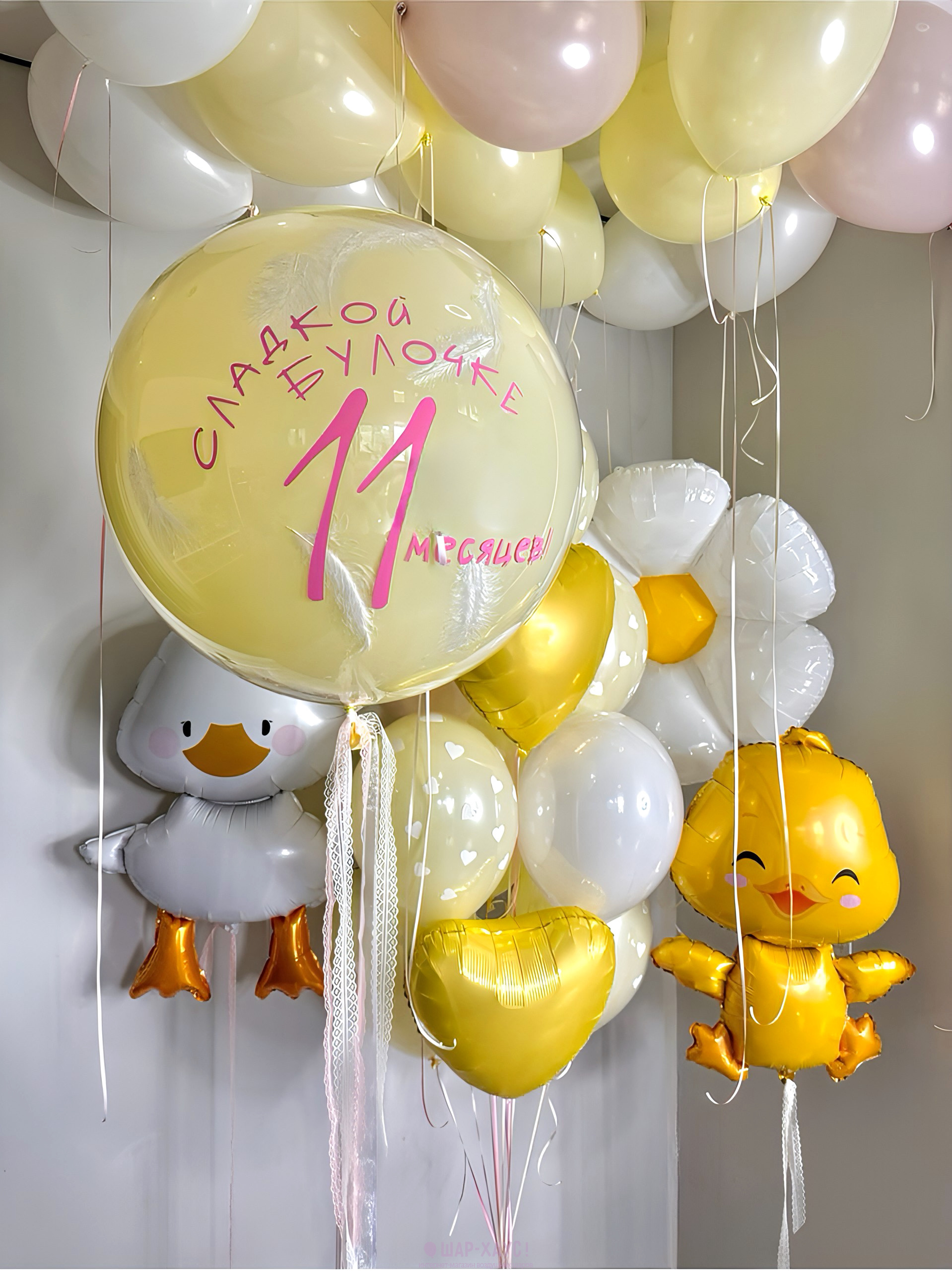 Указать желаемую надпись для большого шара можно в комментарии при оформлении заказа через корзину.