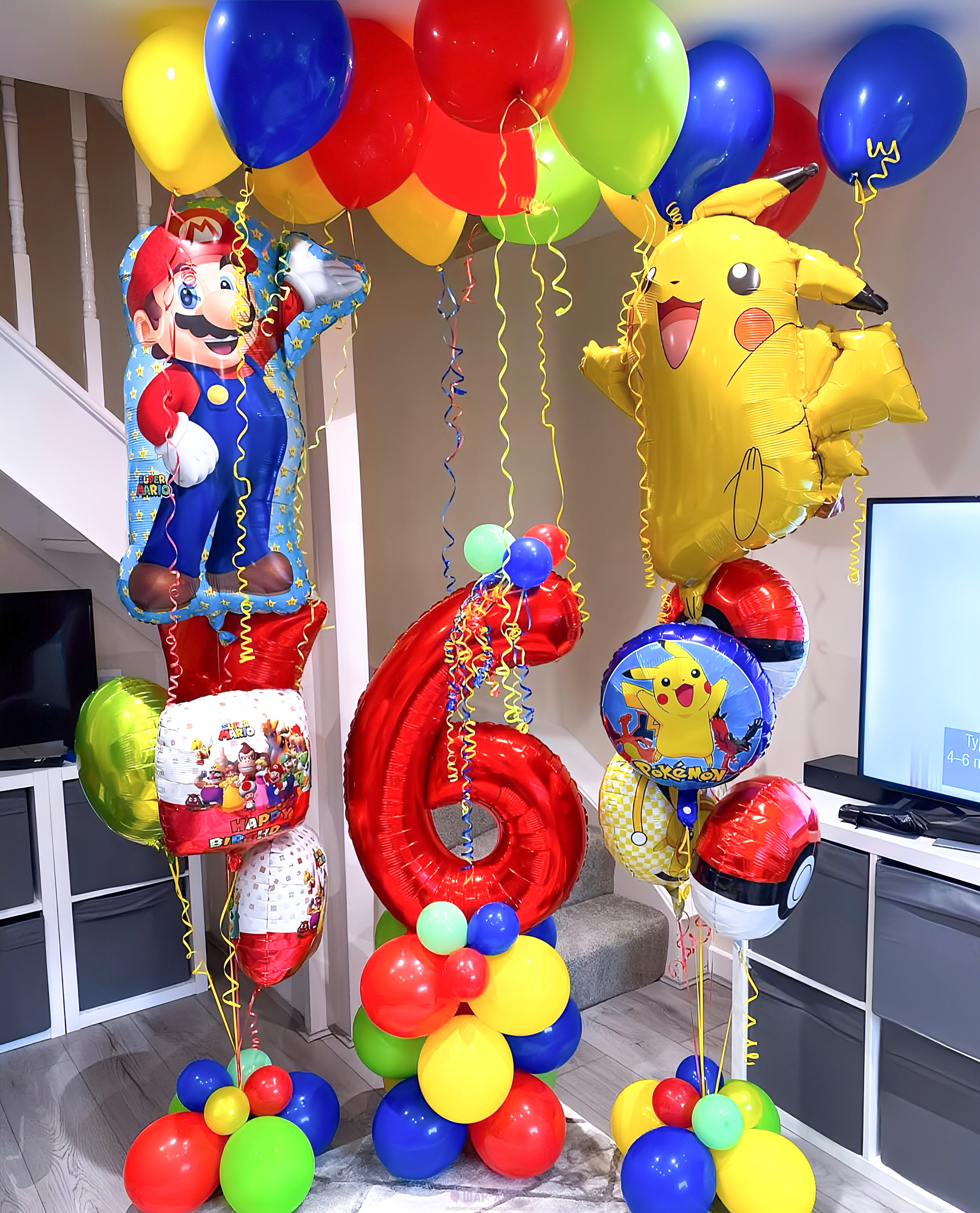 Композиция из шаров "Супер Марио и Пикачу"