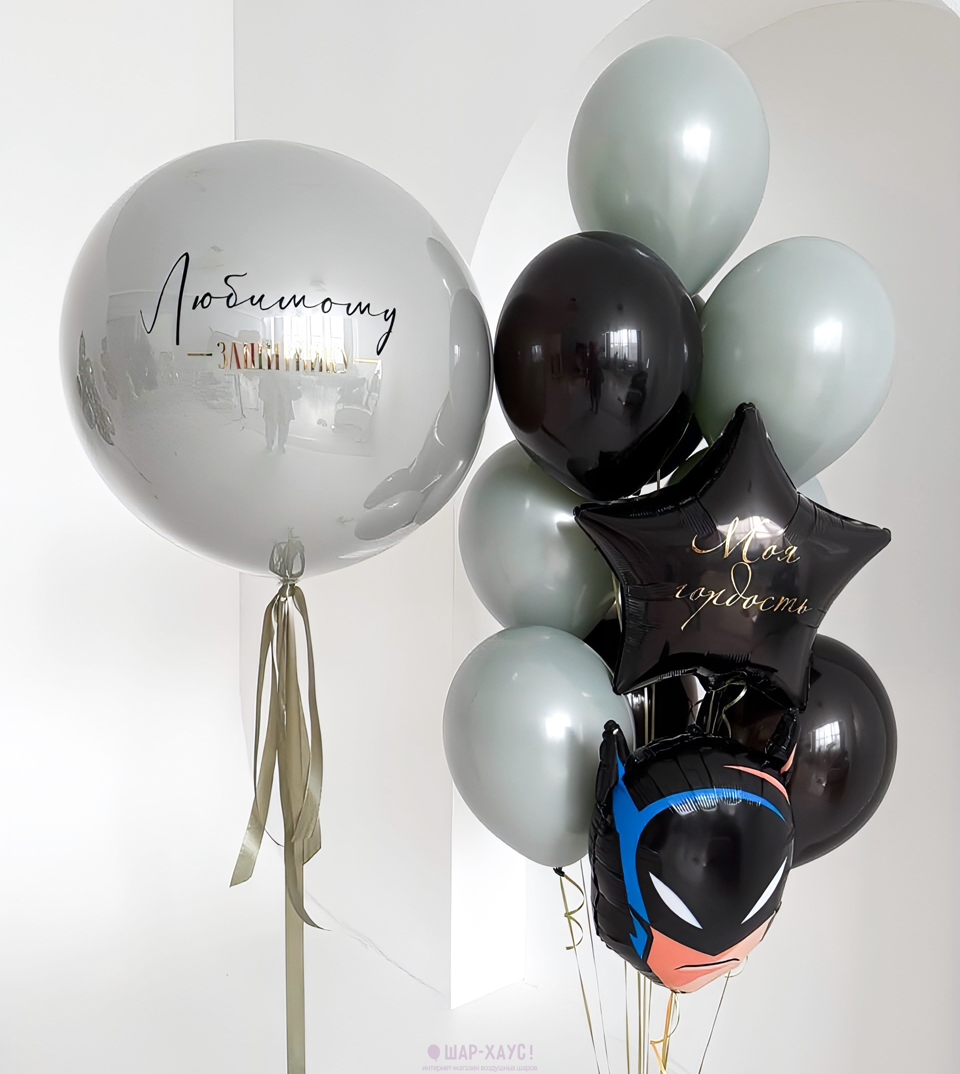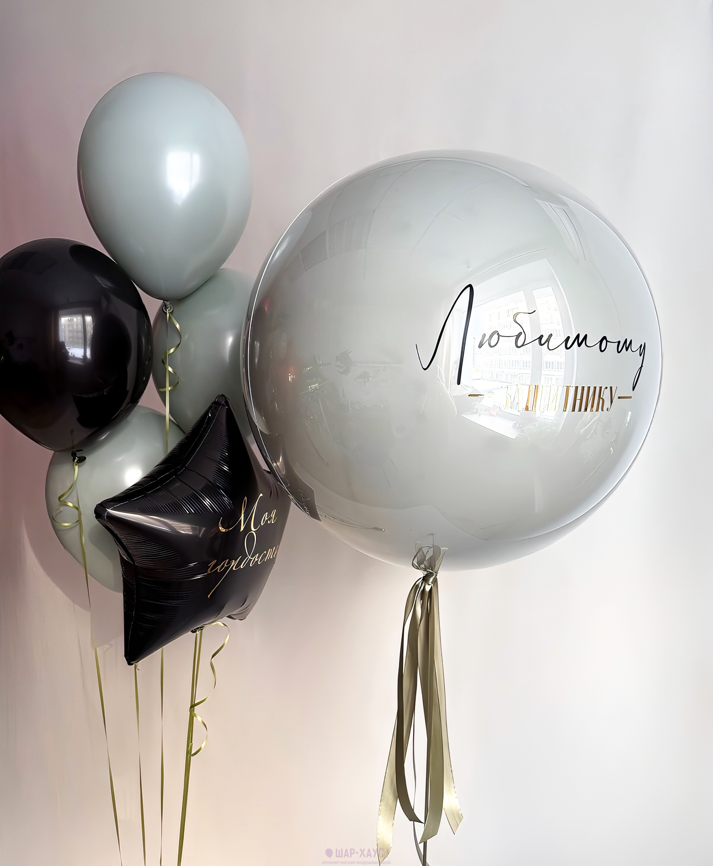 • 1 Стеклянный воздушный шар Дабл стафф серый Sempertex с надписью на выбор (61 см)