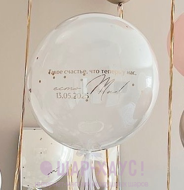 Декоративные грузики в комплекте. Указать желаемую надпись для большого шара можно в комментарии при оформлении заказа через корзину.
