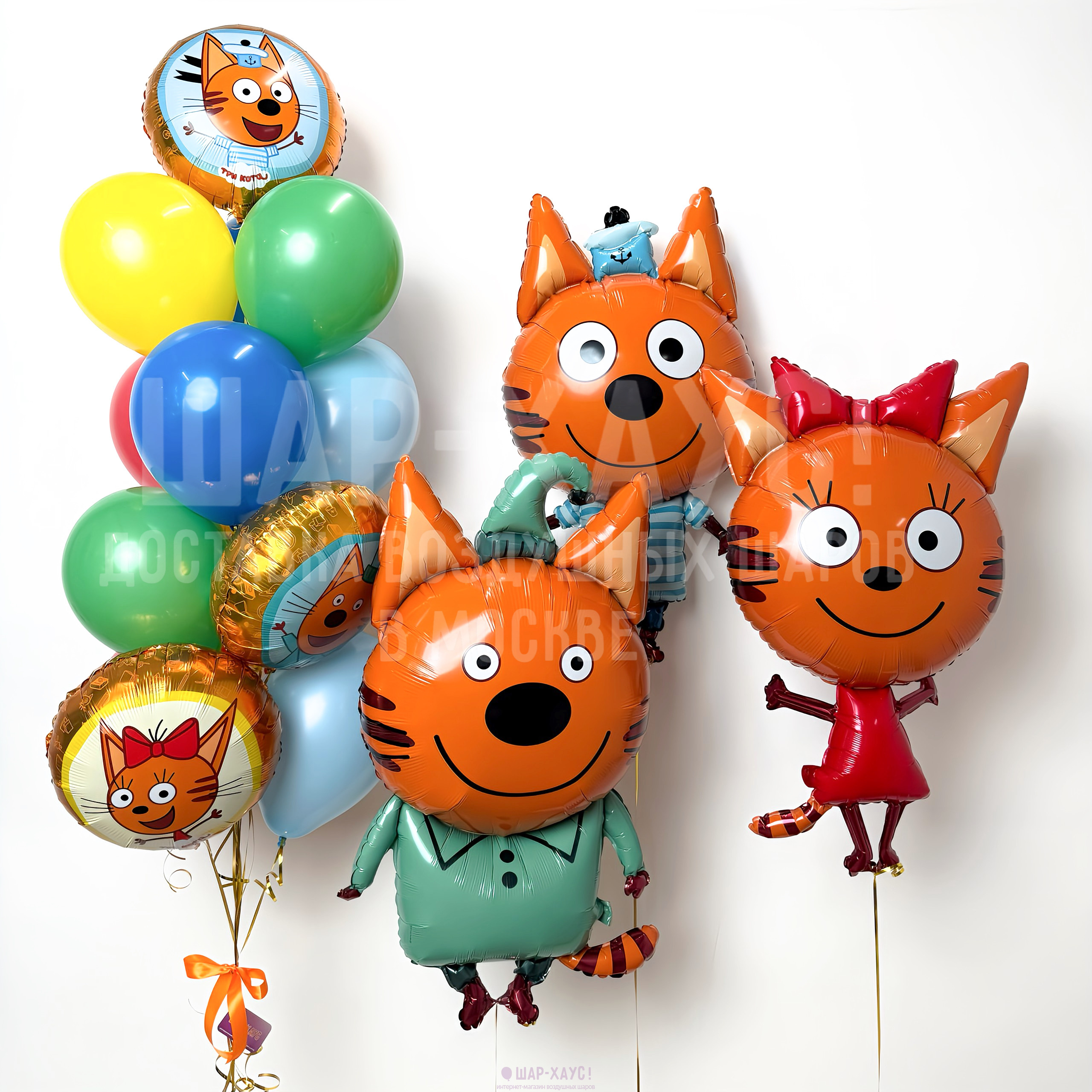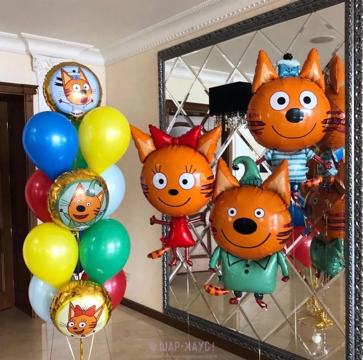 • 3 Фольгированных круга с рисунком "Три кота" (45 см)