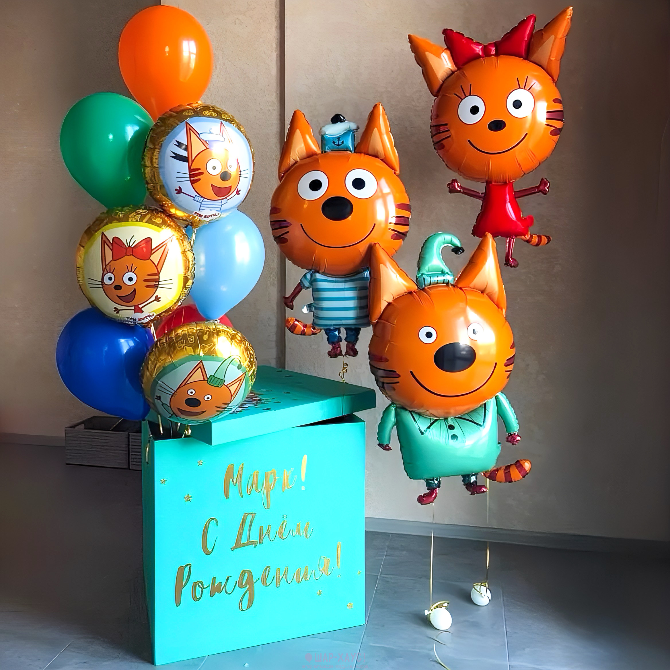 • 3 Фольгированных круга с рисунком персонажей "Три кота" (45 см)