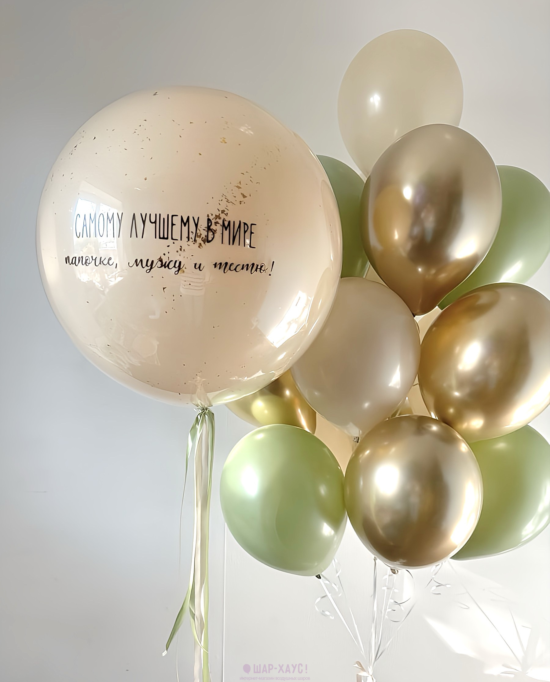 • 1 Большой зеркальный шар Дабл стафф с конфети-крошкой и надписью на выбор (65 см)