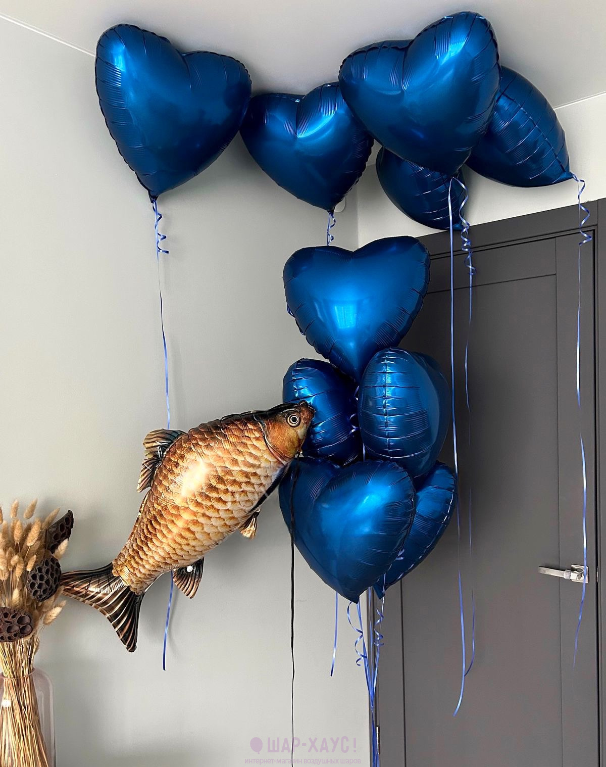 • 1 Фонтан из 5 фольгированных сердец "Темно-синий сатин" (45 см, Flexmetal 1204-1491)