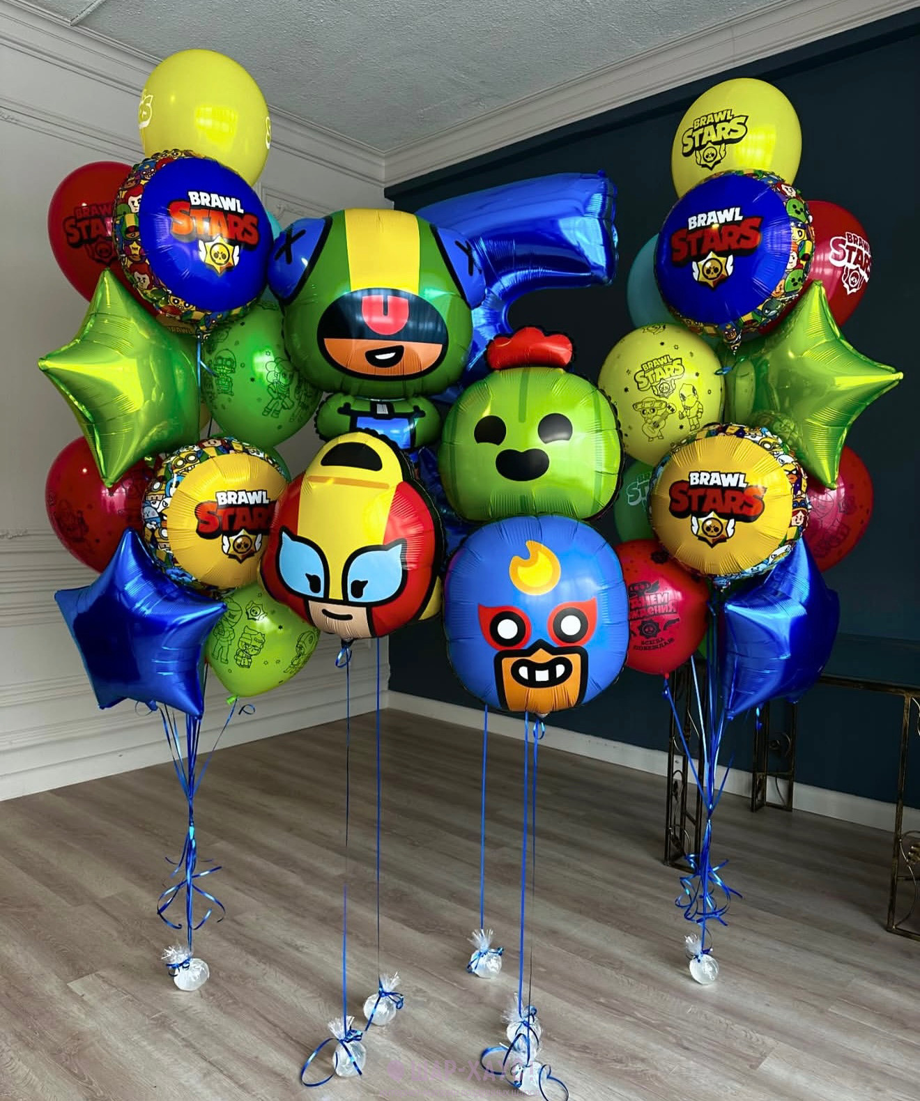 • 9 Латексных разноцветных воздушных шаров с рисунком Бравл Старс (35 см)