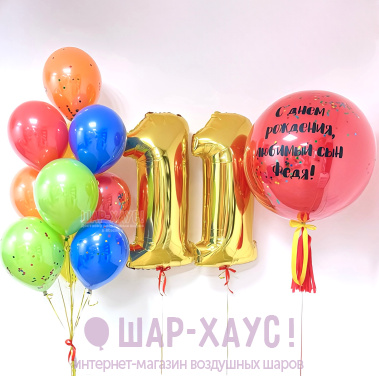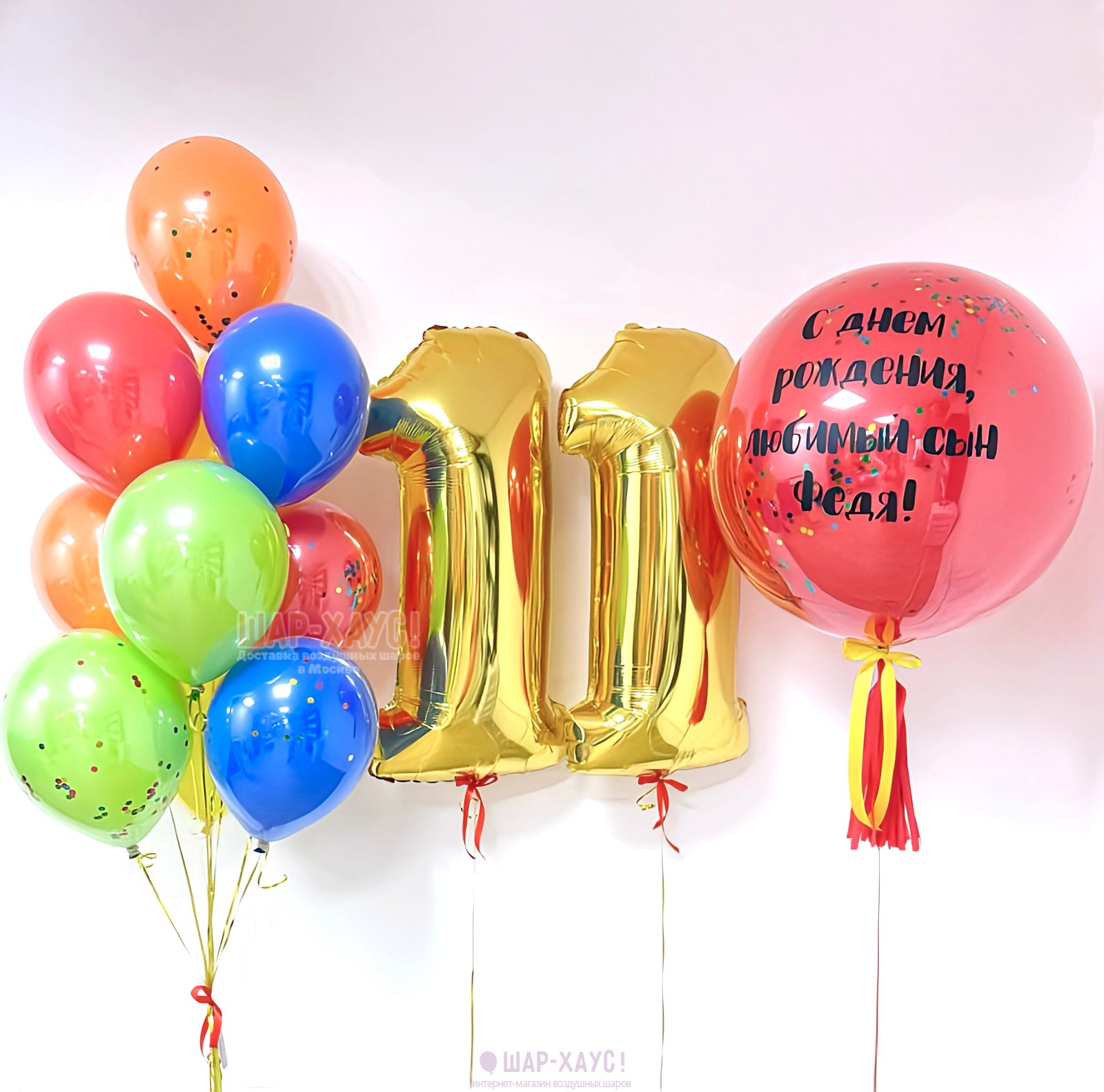 • 1 Большой шар Дабл Стафф с конфетти внутри, надписью на выбор и кистью тассел (65 см)