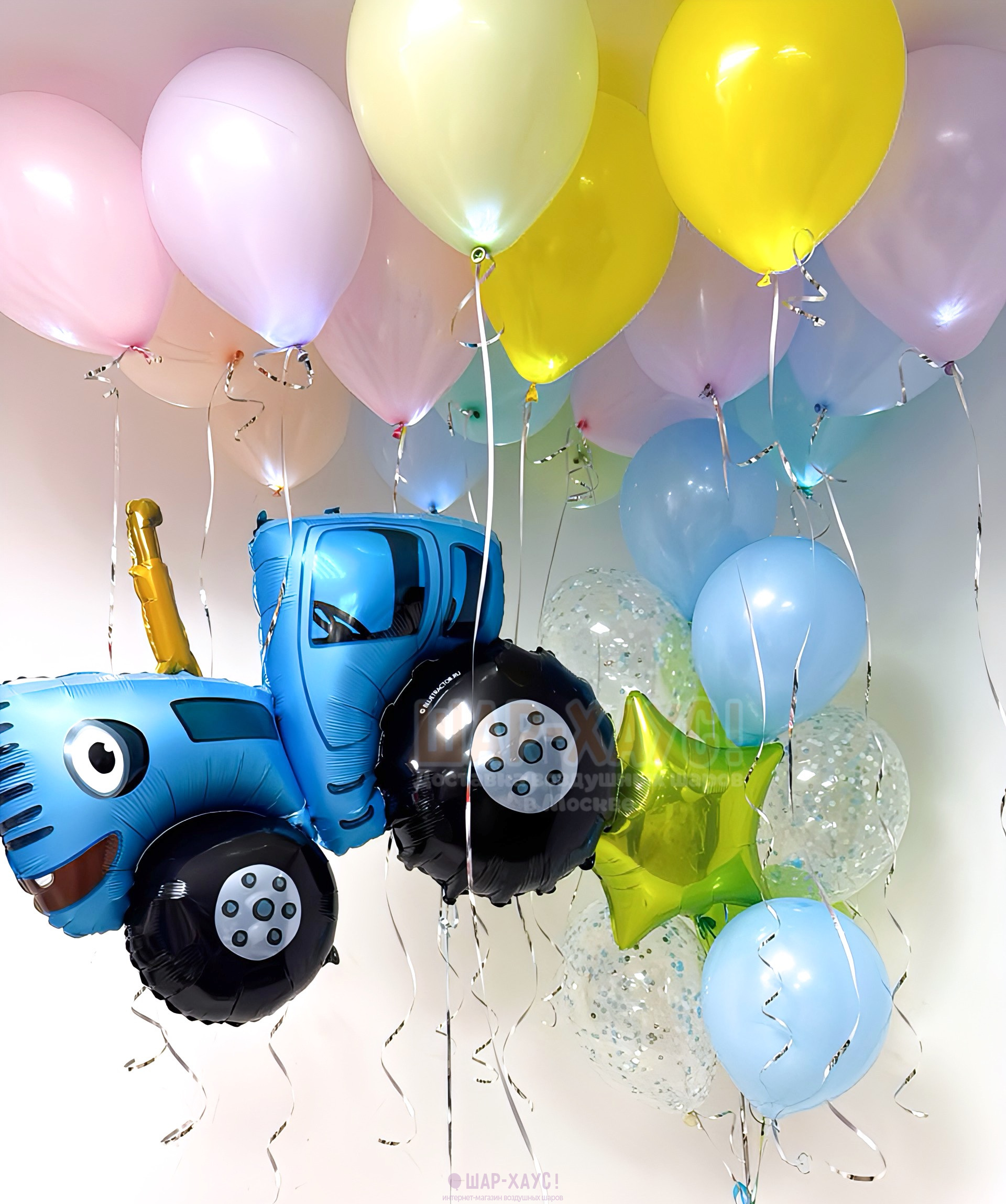 Композиция из шаров "Яркий синий трактор"