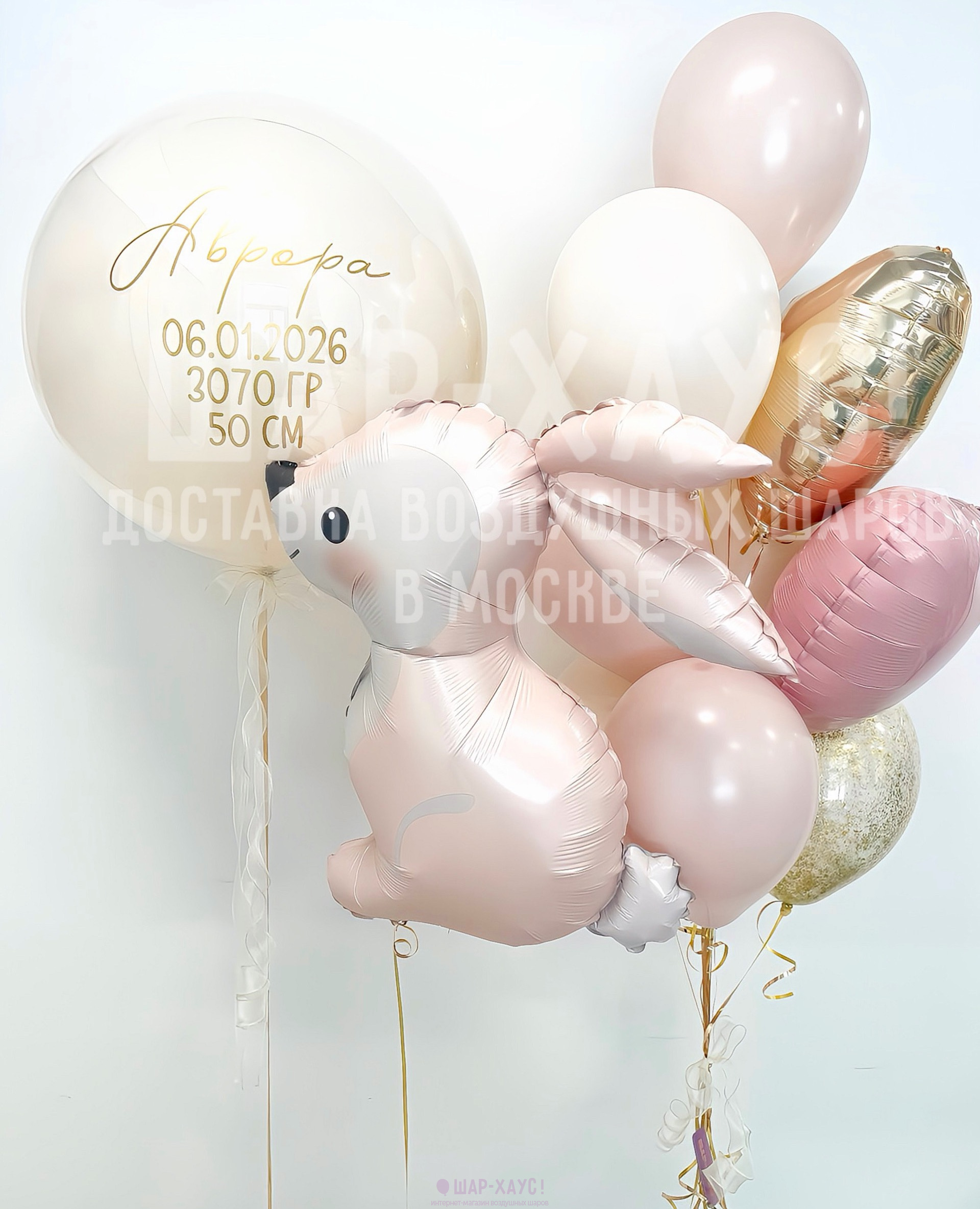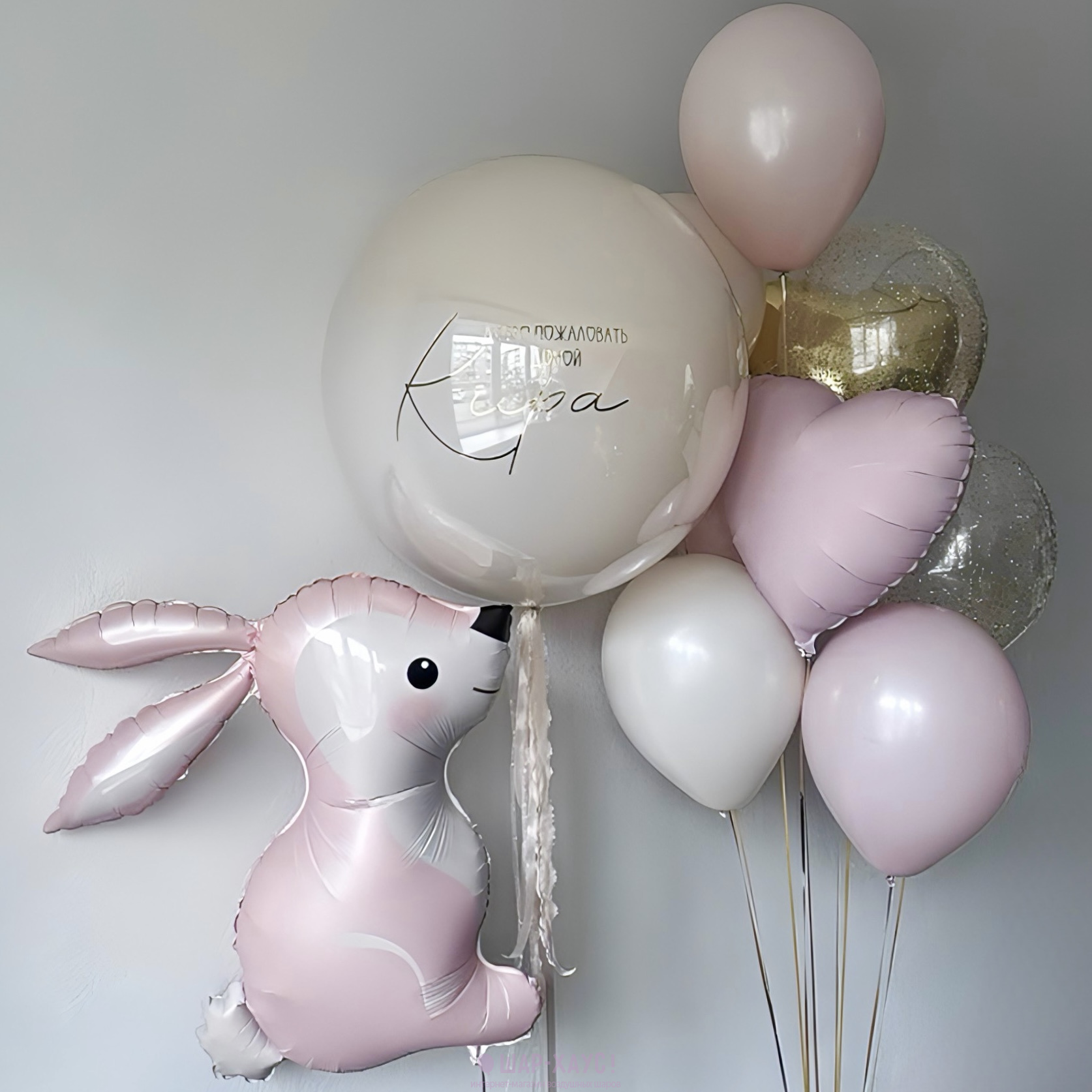 Декоративные грузики в комплекте. Указать желаемую надпись для большого шара можно в комментарии при оформлении заказа через корзину.