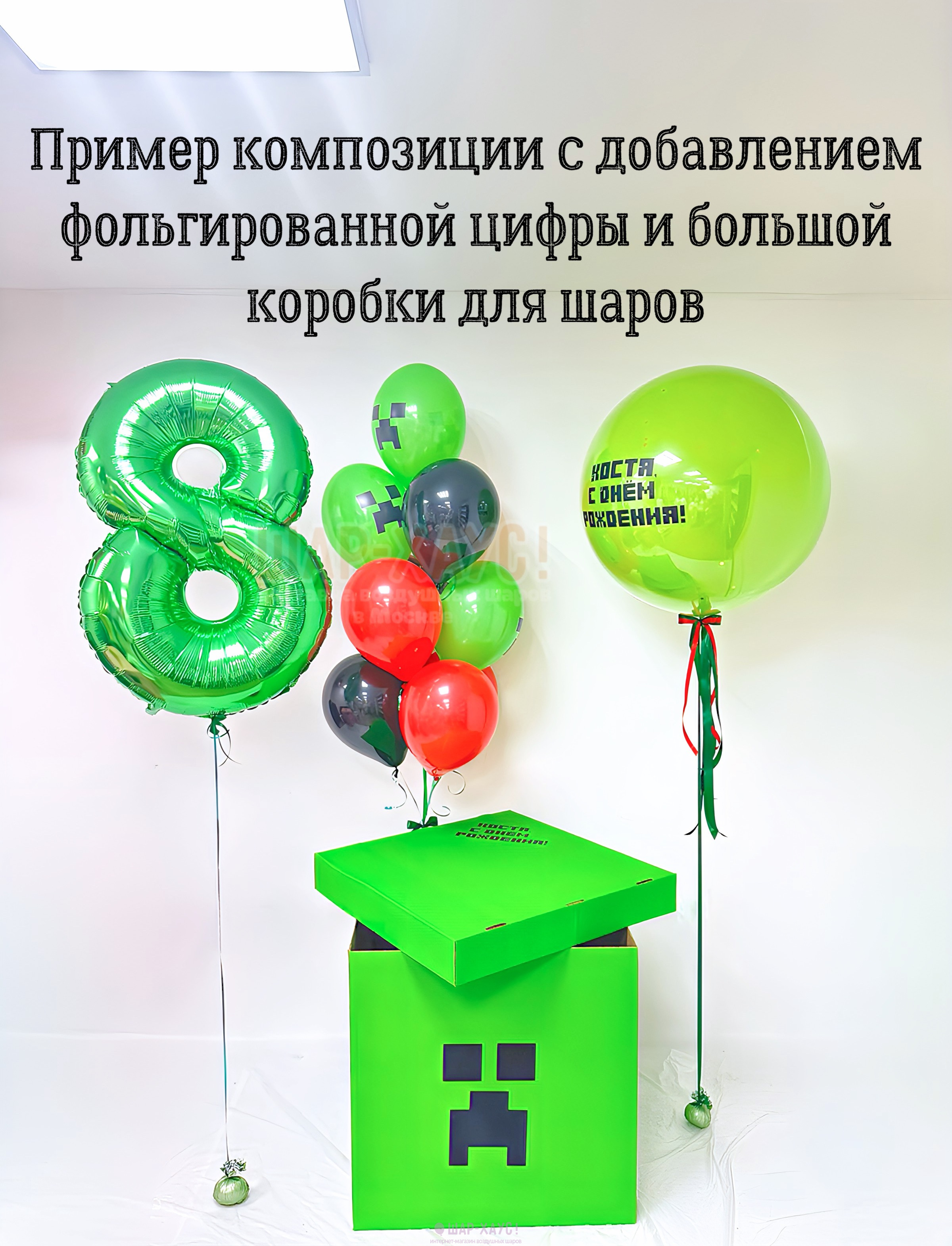 • 3 Латексных воздушных шара с рисунком тематики "Minecraft" зеленые (35 см)