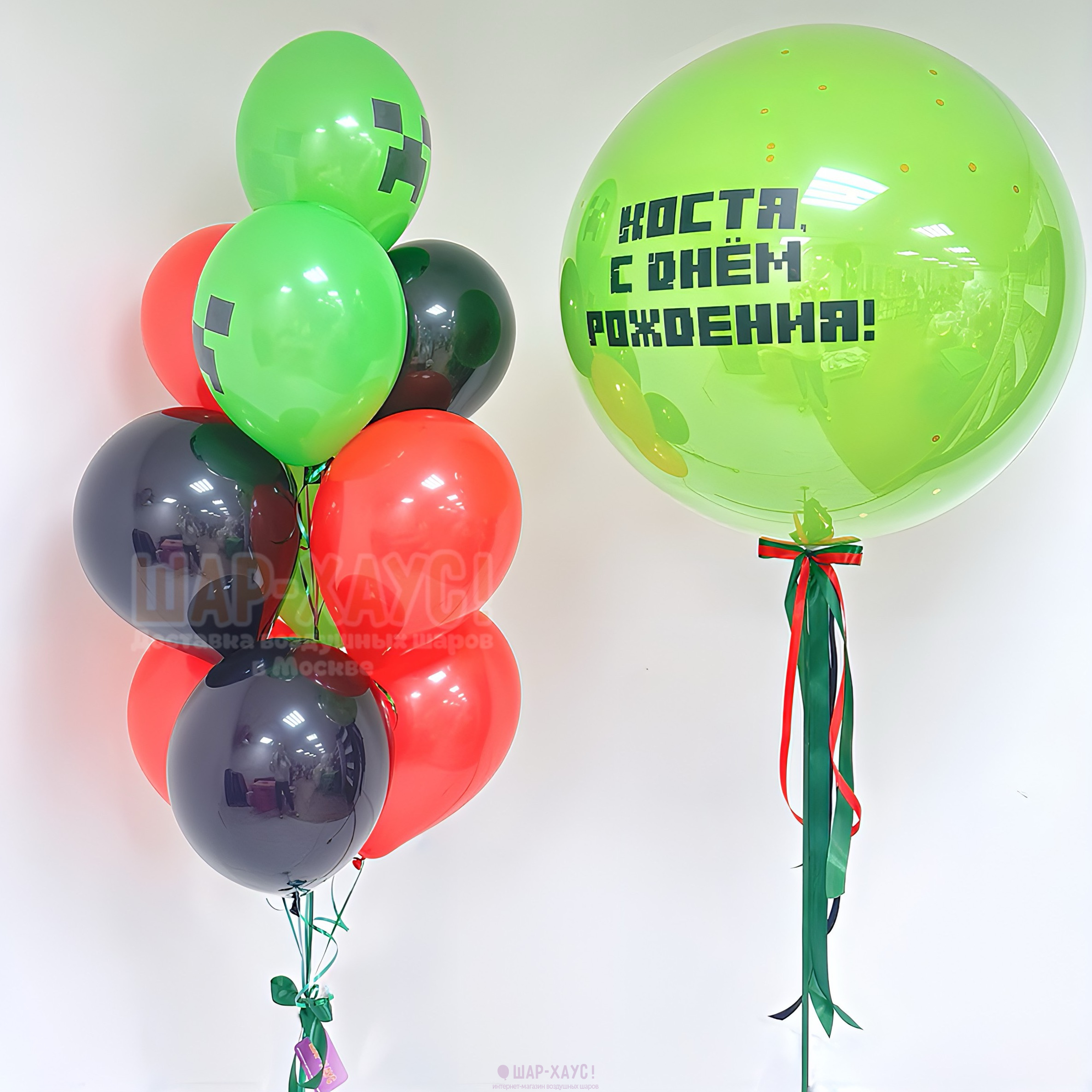 Композиция из шаров "Зеркальный шар и фонтан Майнкрафт"