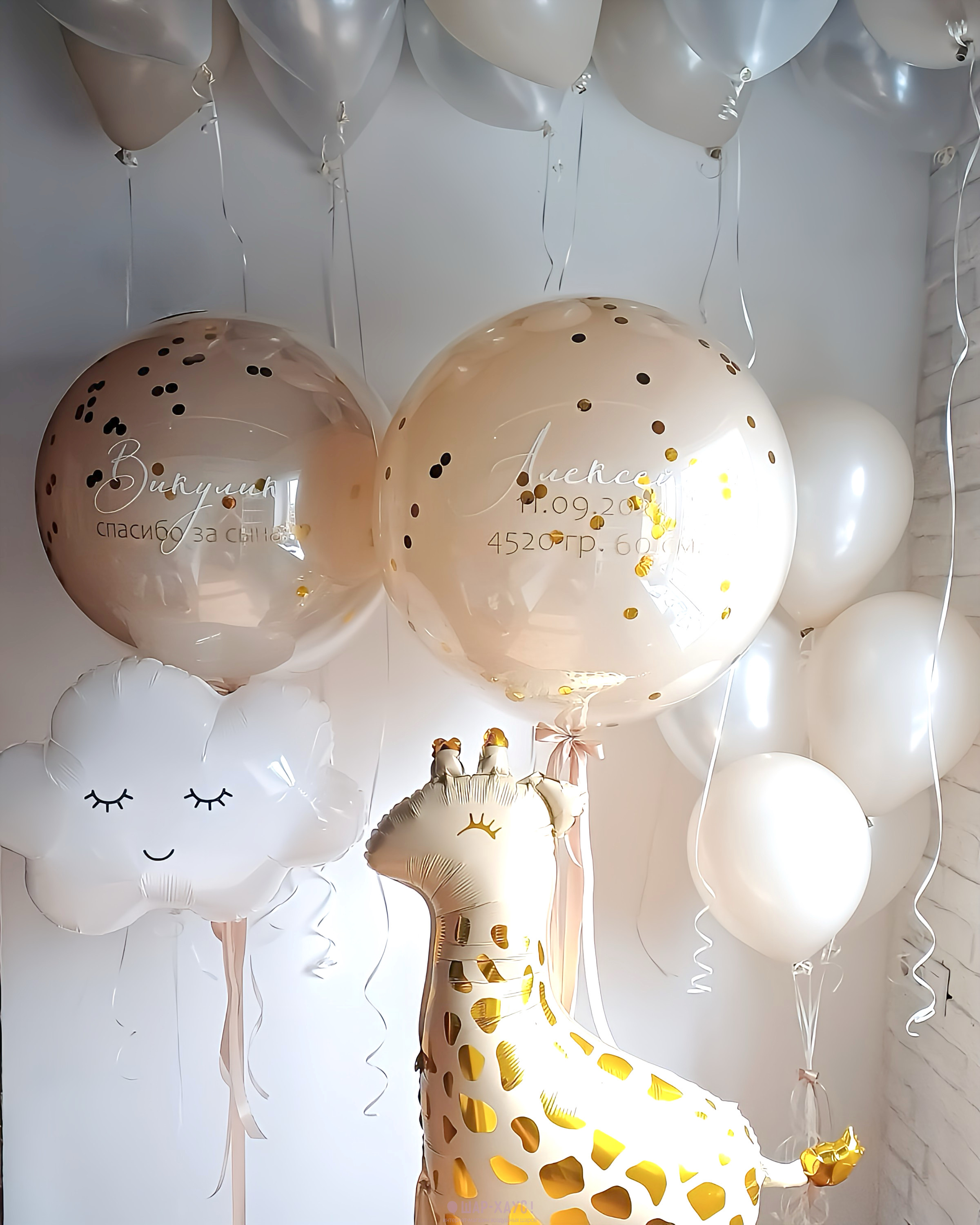 • 2 Больших стеклянных воздушных шара Дабл стафф с конфетти и надписями на выбор(65 см)