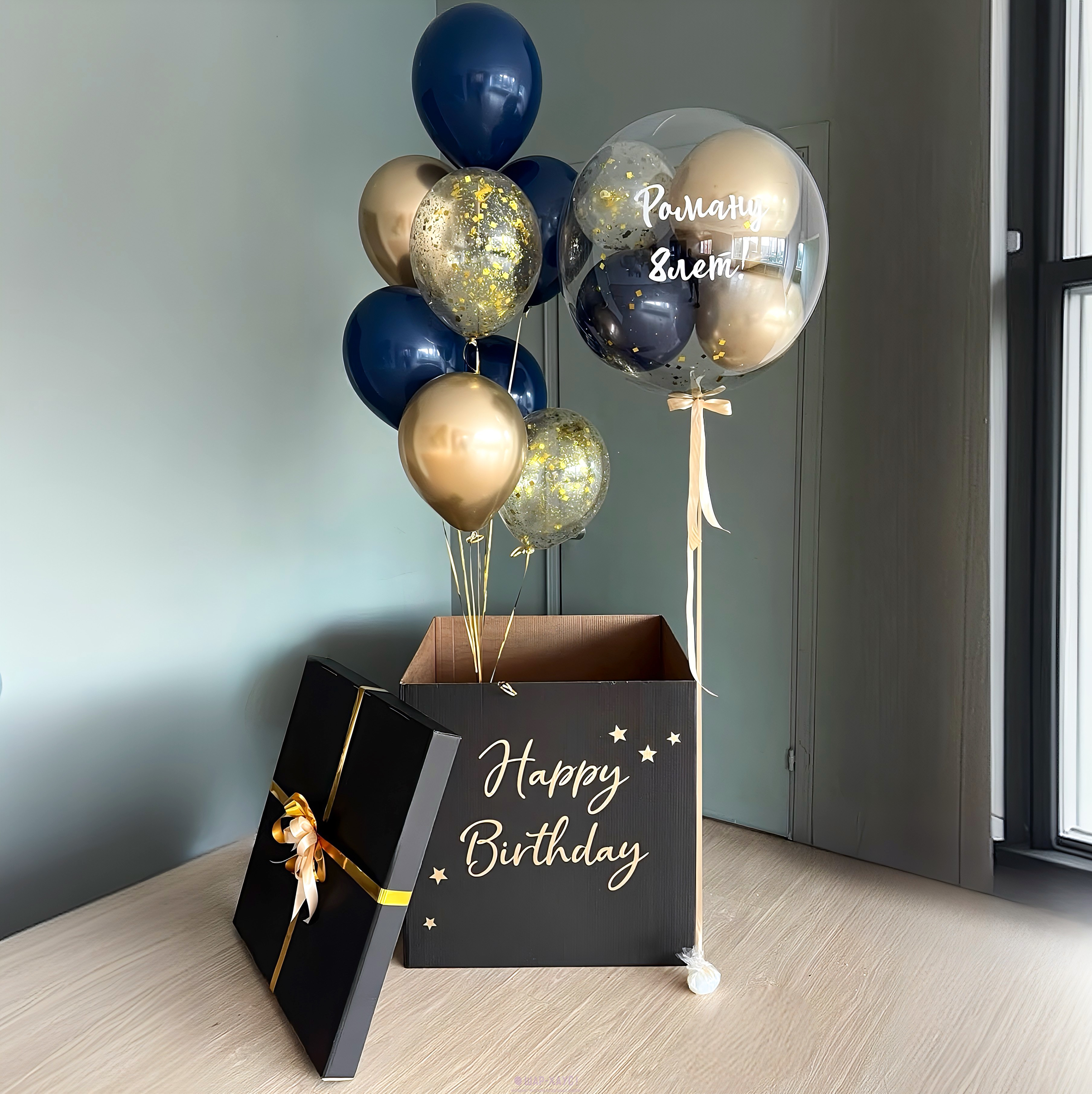 • 1 Воздушный шар Бабл с шариками, конфетти внутри и надписью на выбор (60 см)