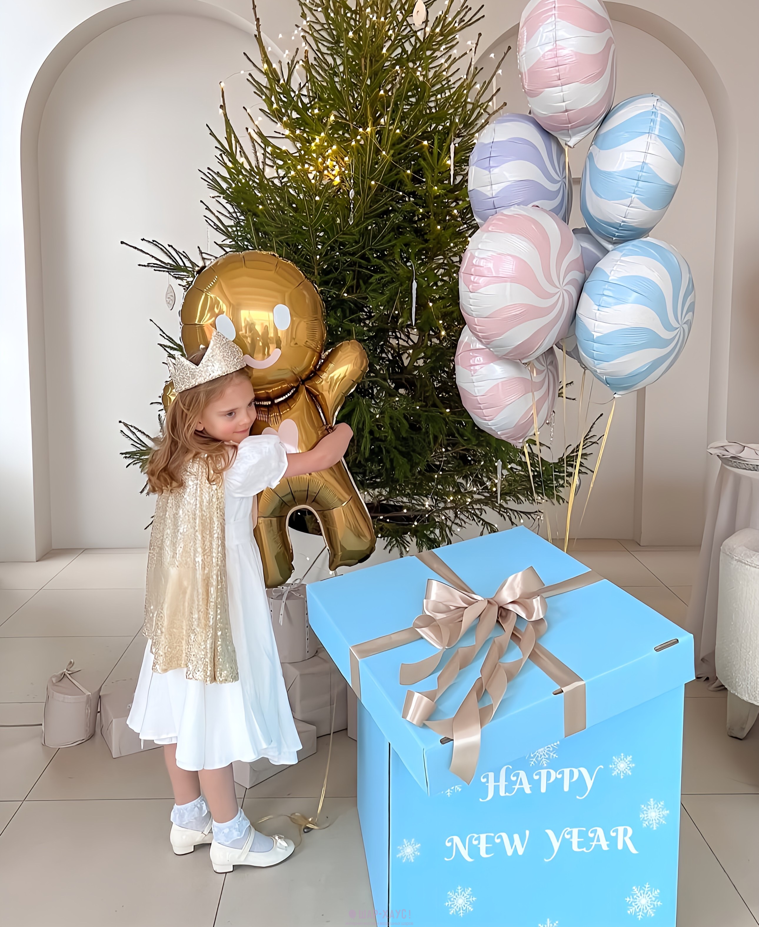 Коробка-сюрприз с шарами голубая "С Новым Годом"