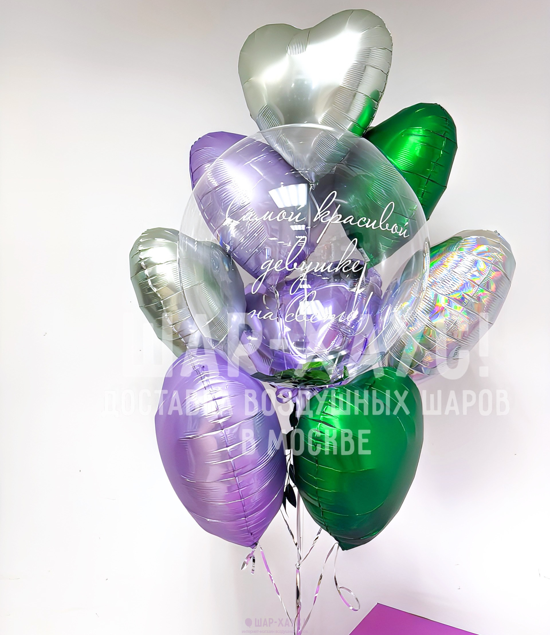 • 1 Воздушный шар Бабл с декоративной зеленью внутри и снаружи (45 см)