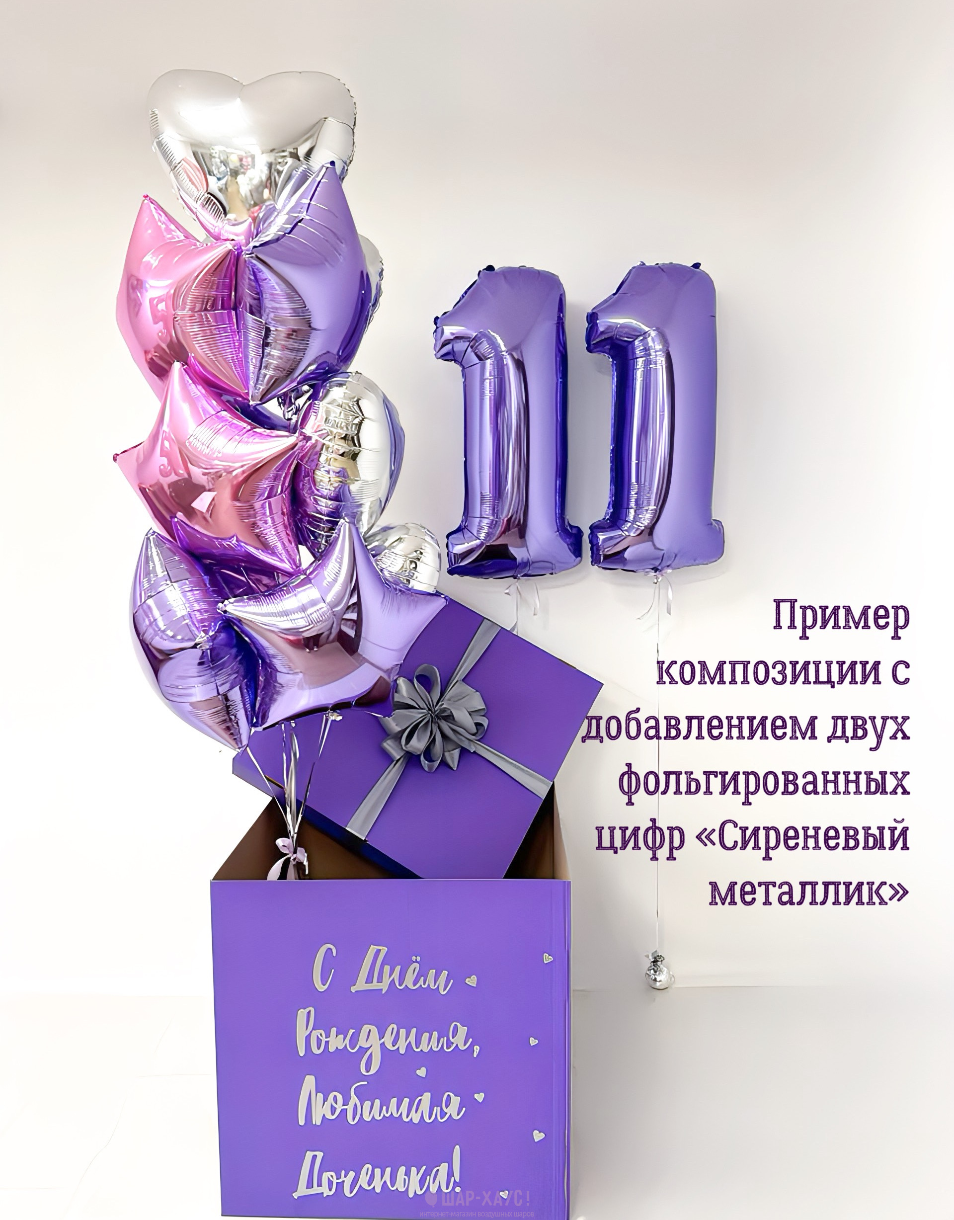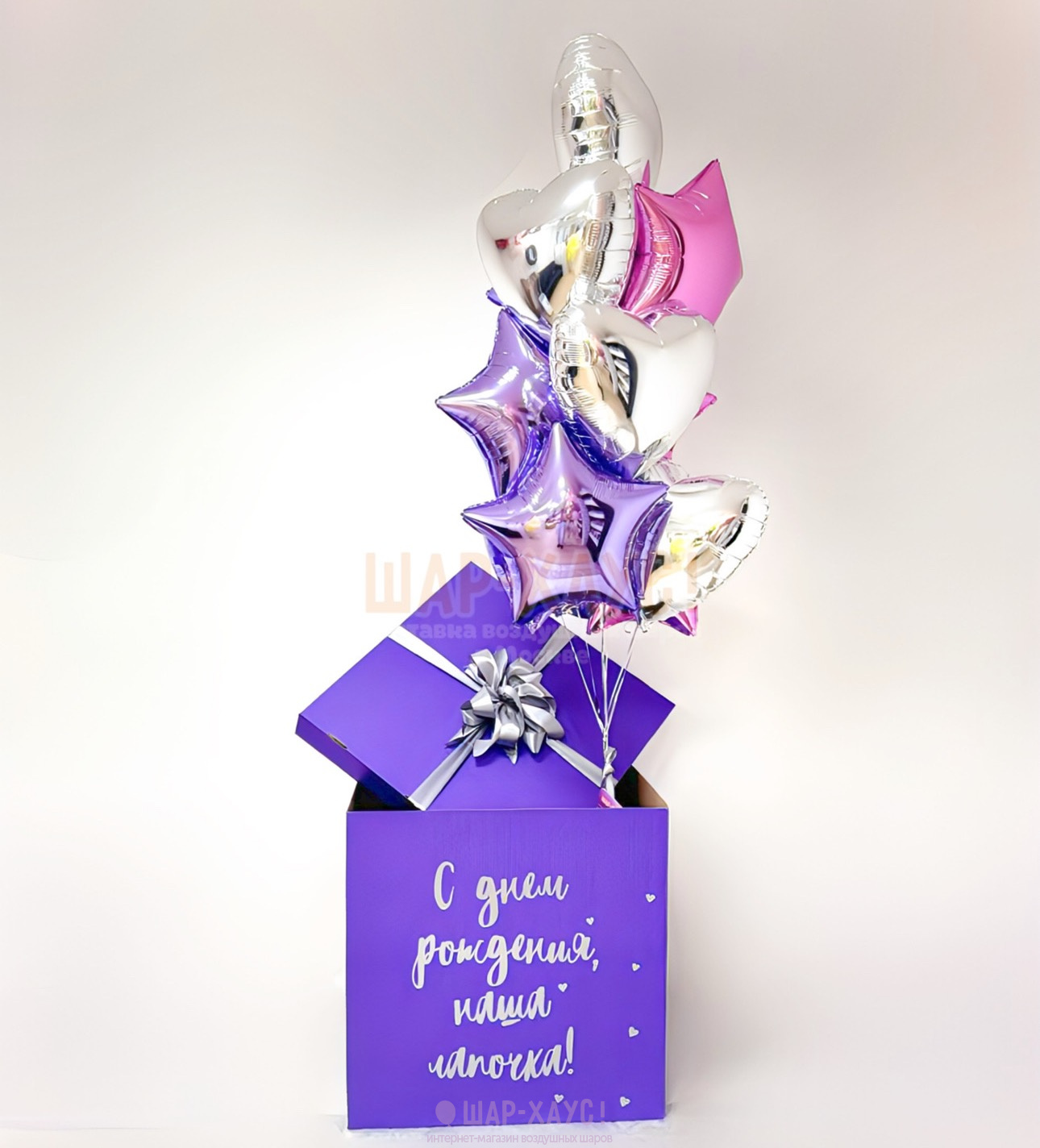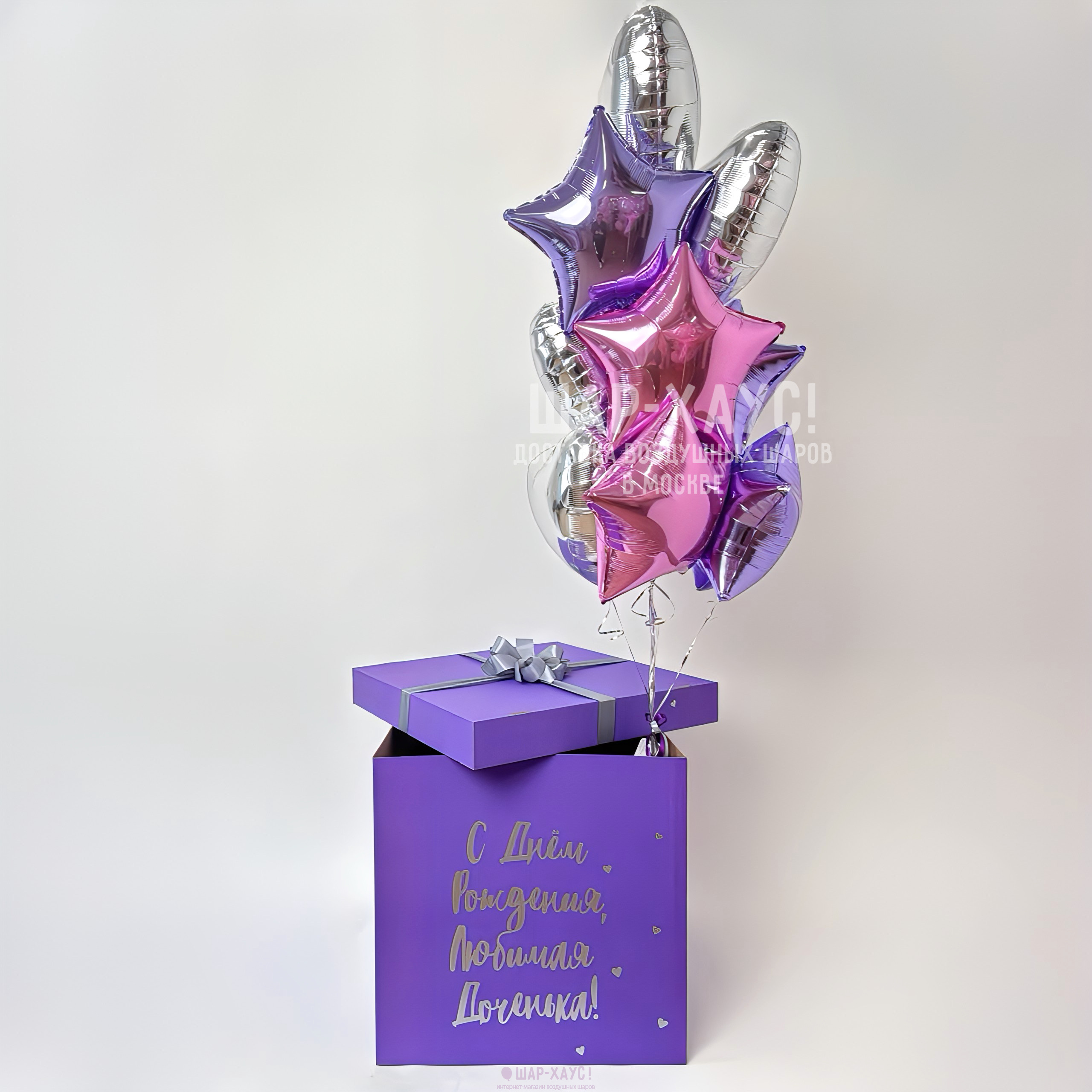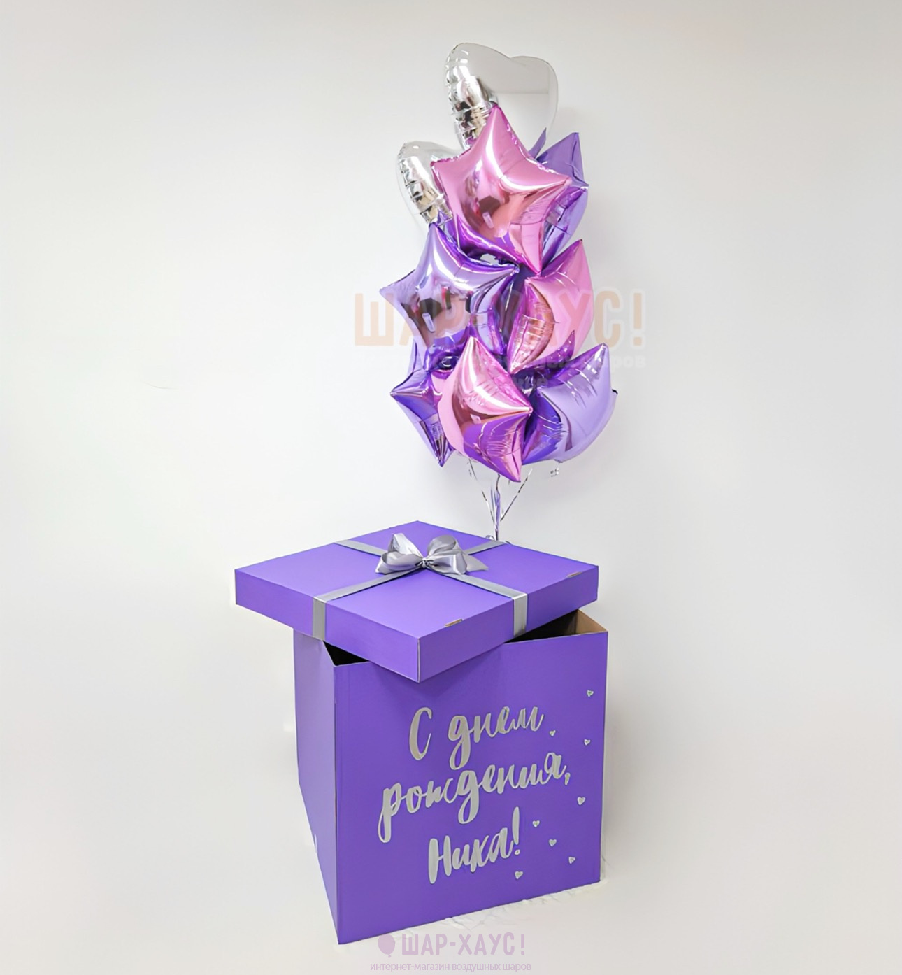 Коробка сюрприз с шарами "Сиреневый блеск"