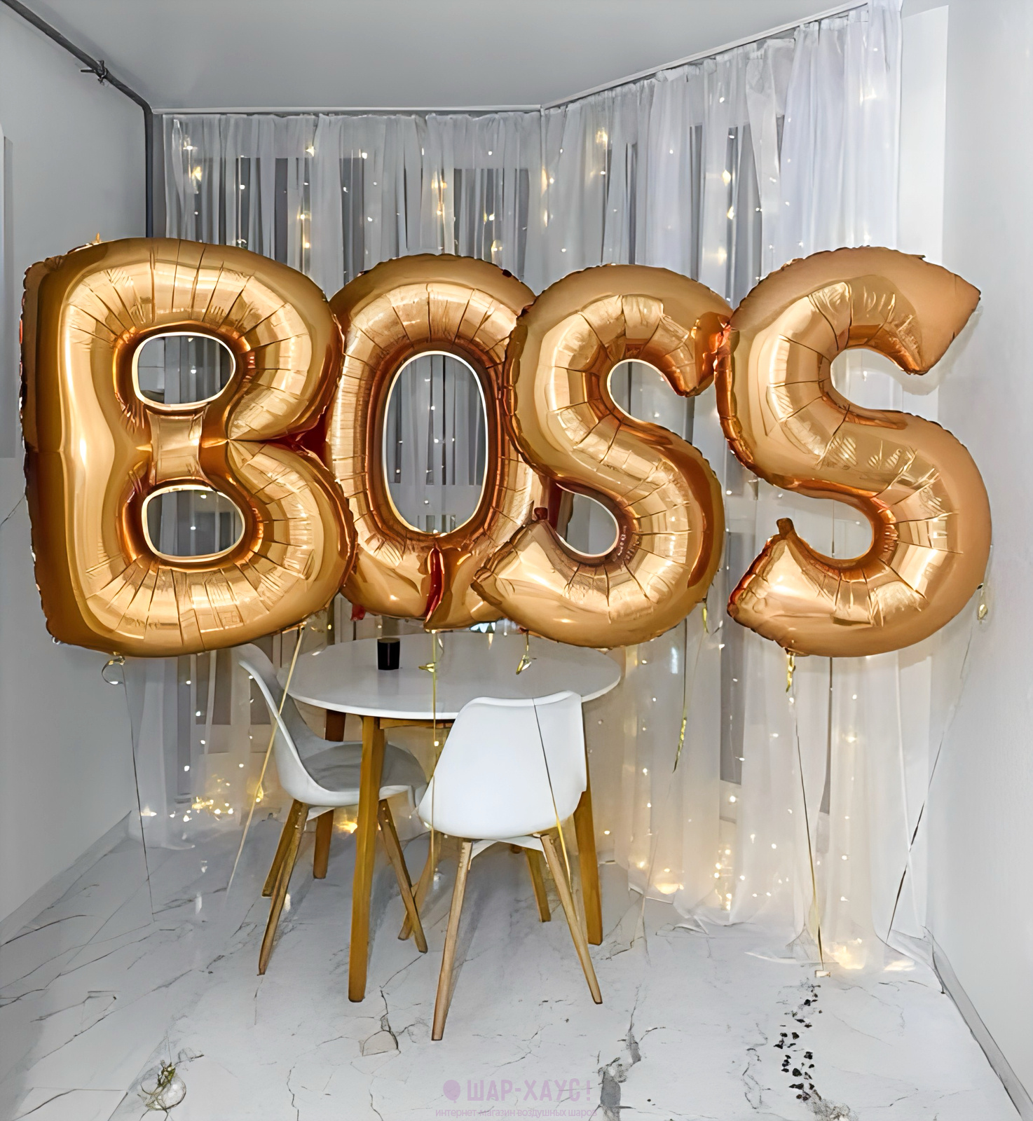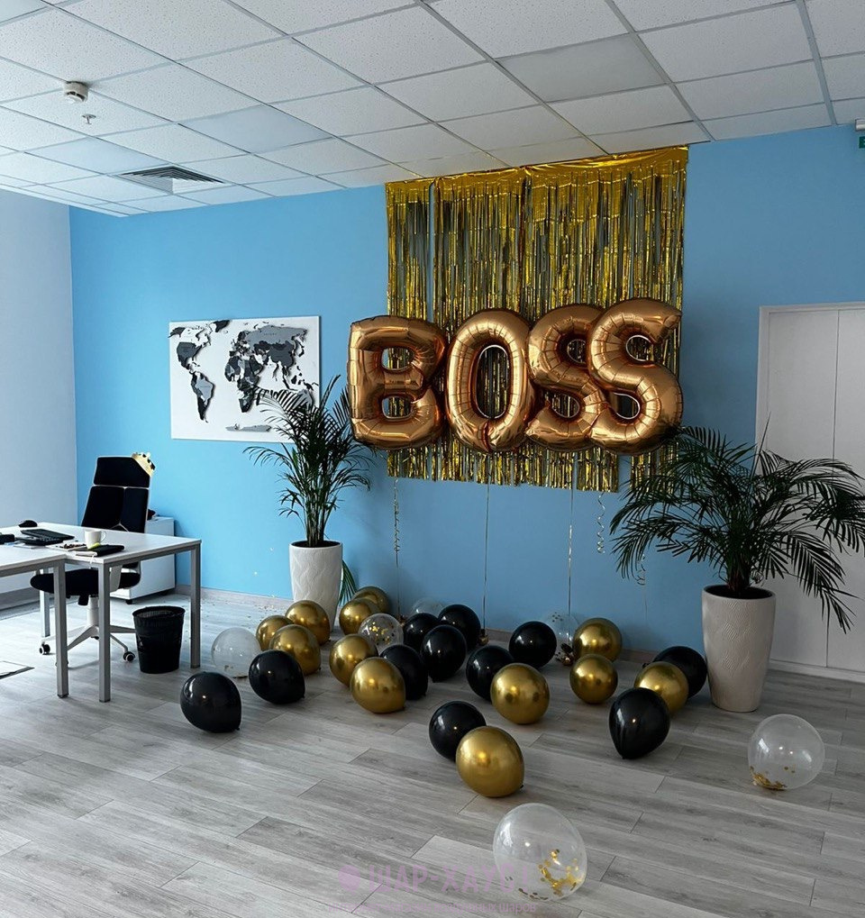 Надпись из больших фольгированных букв "Boss"