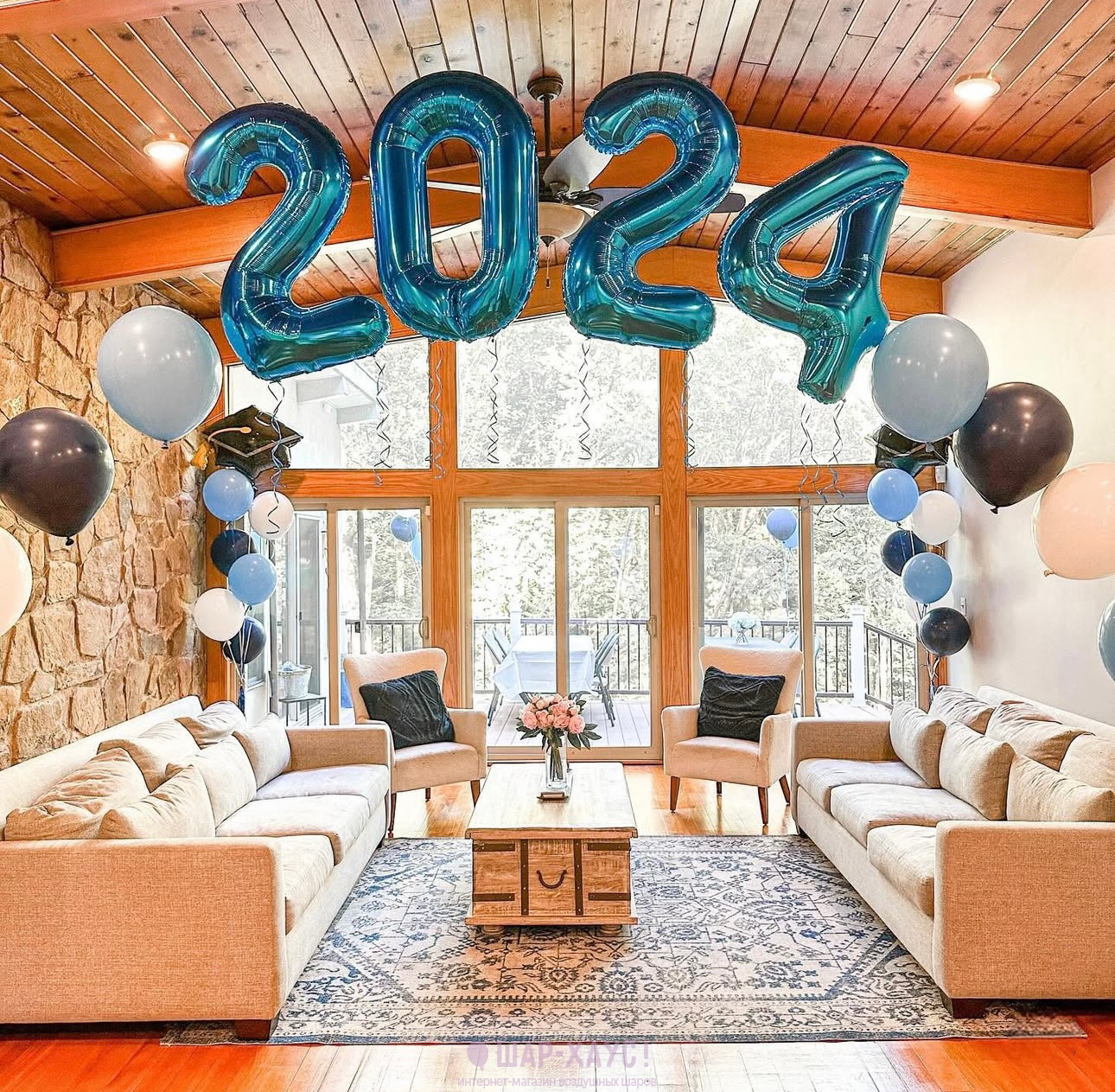 • Гирлянда с гелием из 12 шаров (40 см) и четырех цифр 2025 (102 см)