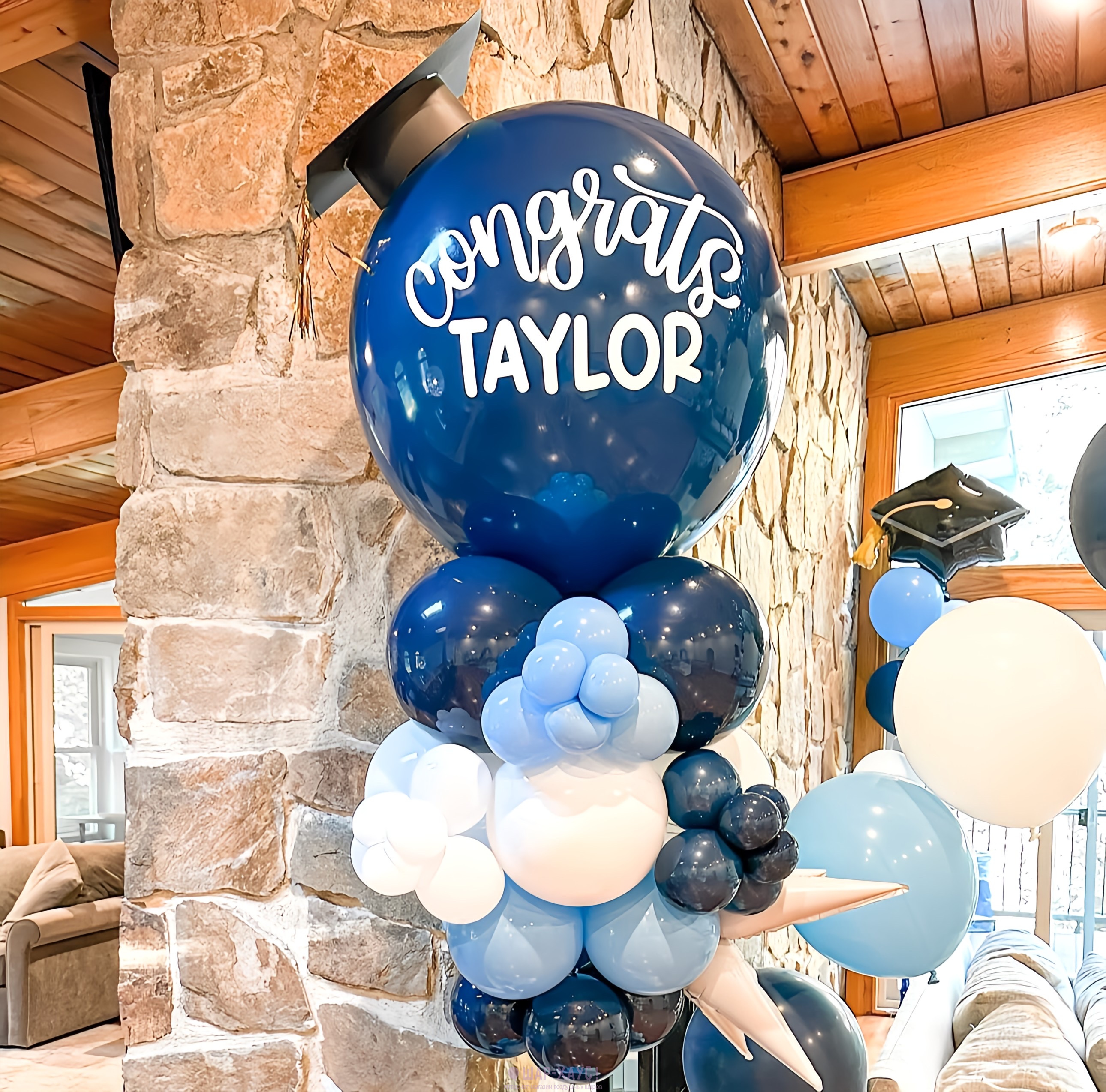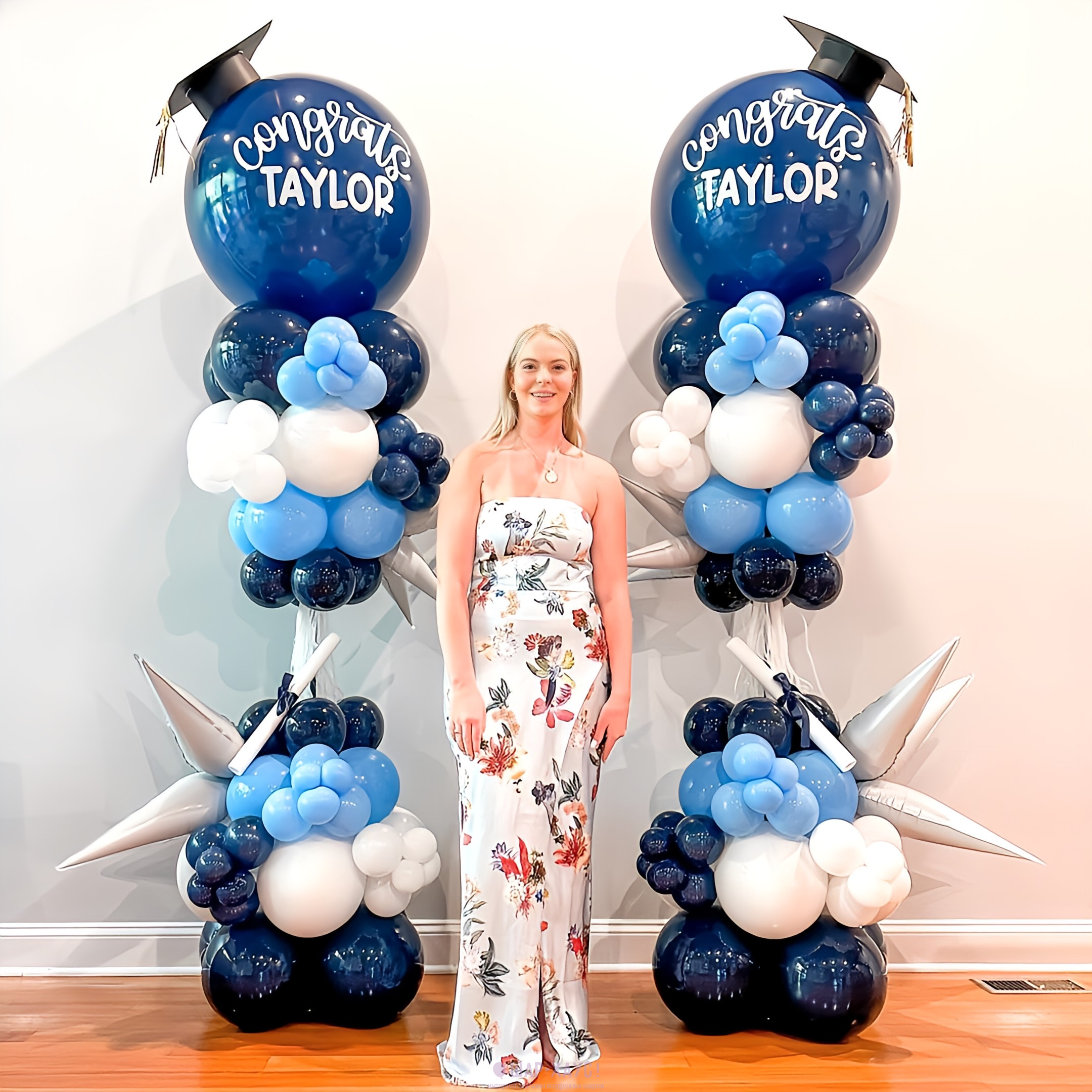 • 2 Стойки из разнокалиберных воздушных шаров с надписью и декором на выбор (200 см)