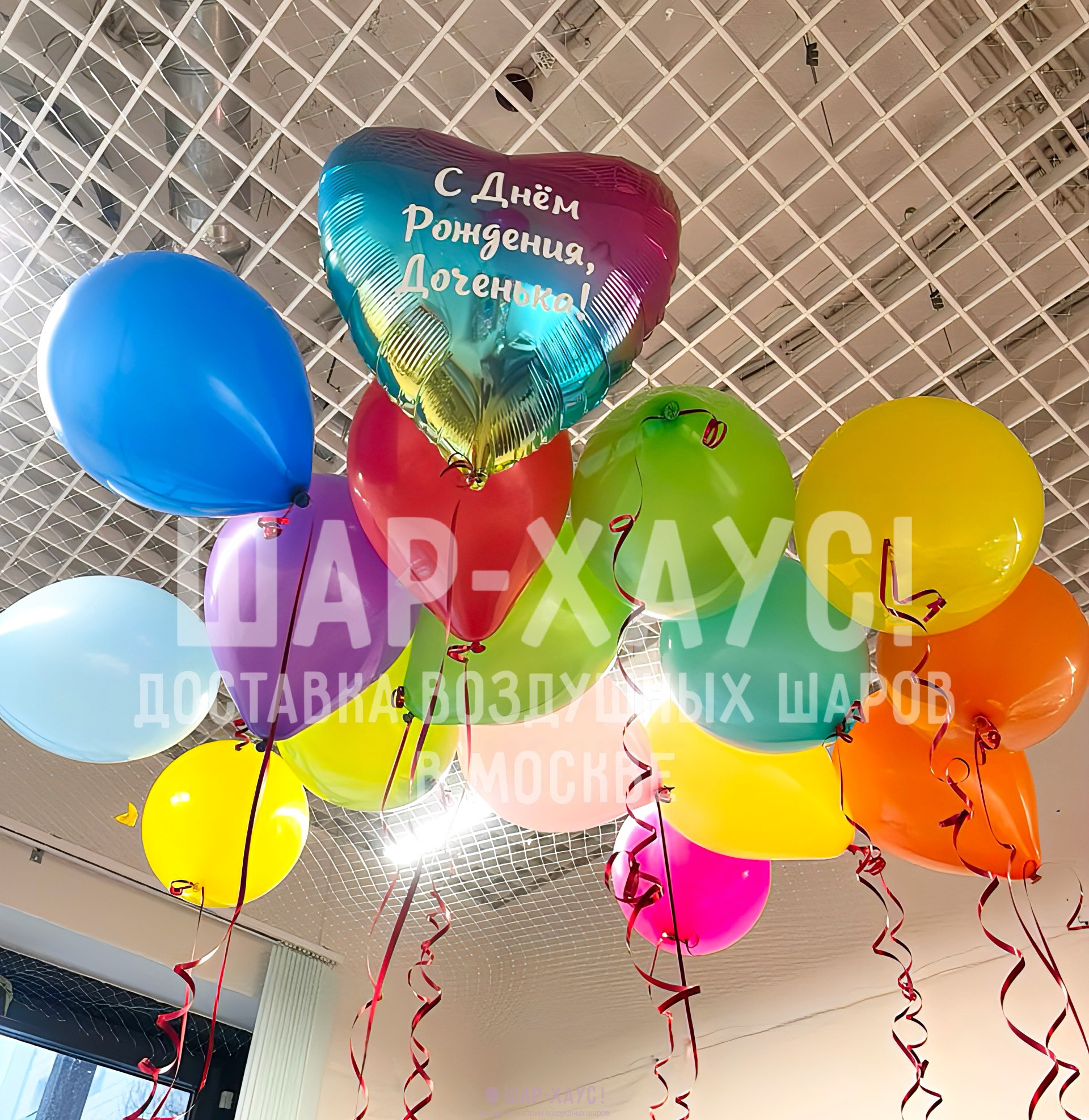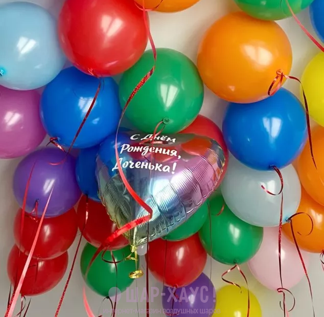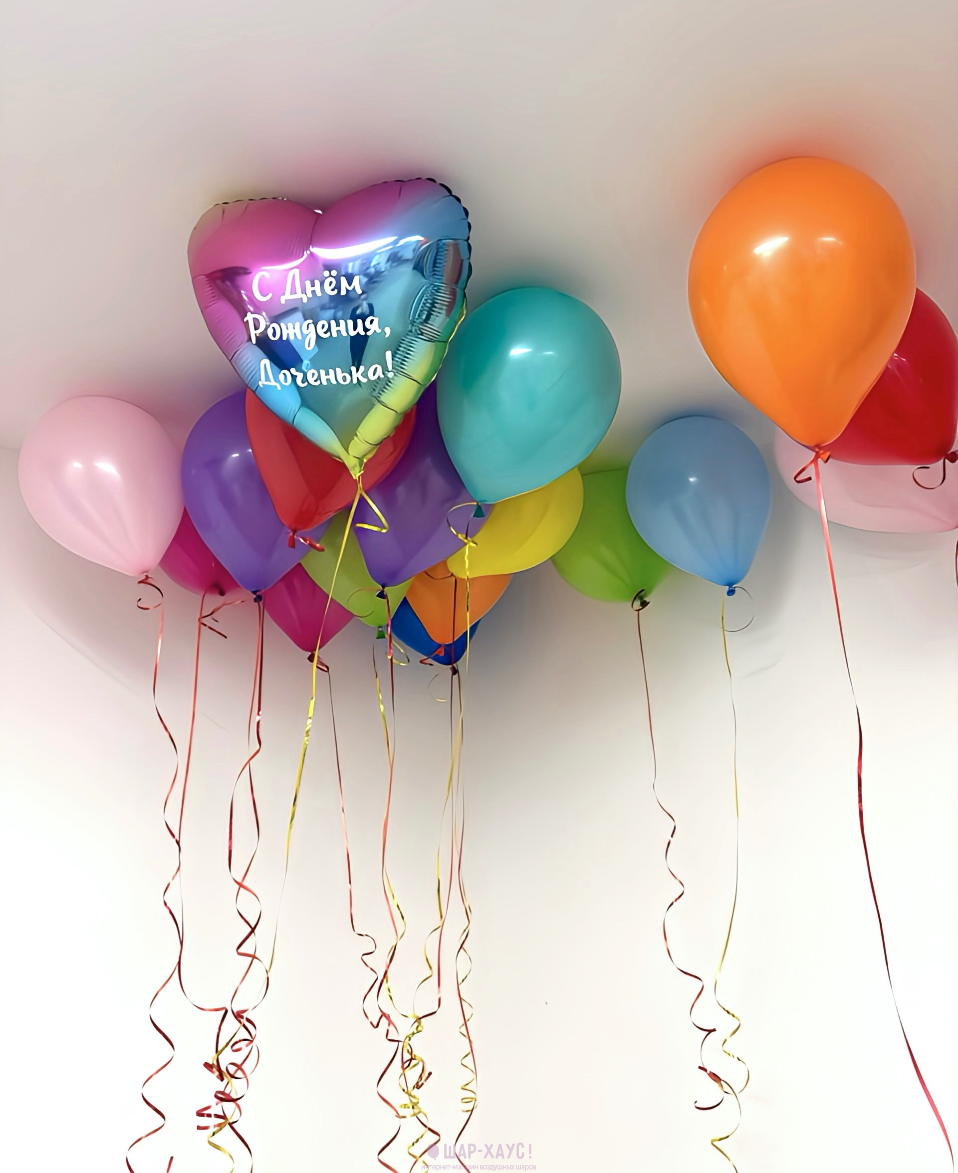 Разноцветные шары под потолок "С днем рождения, доченька"