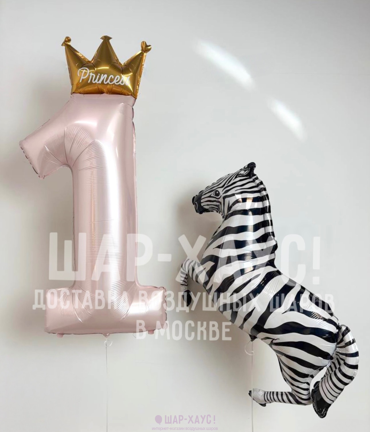 Шар-цифра "Единичка PRINCESS с короной розовая"