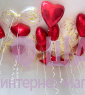 Шары с гелием под потолок "Красные сердца и конфетти золото"