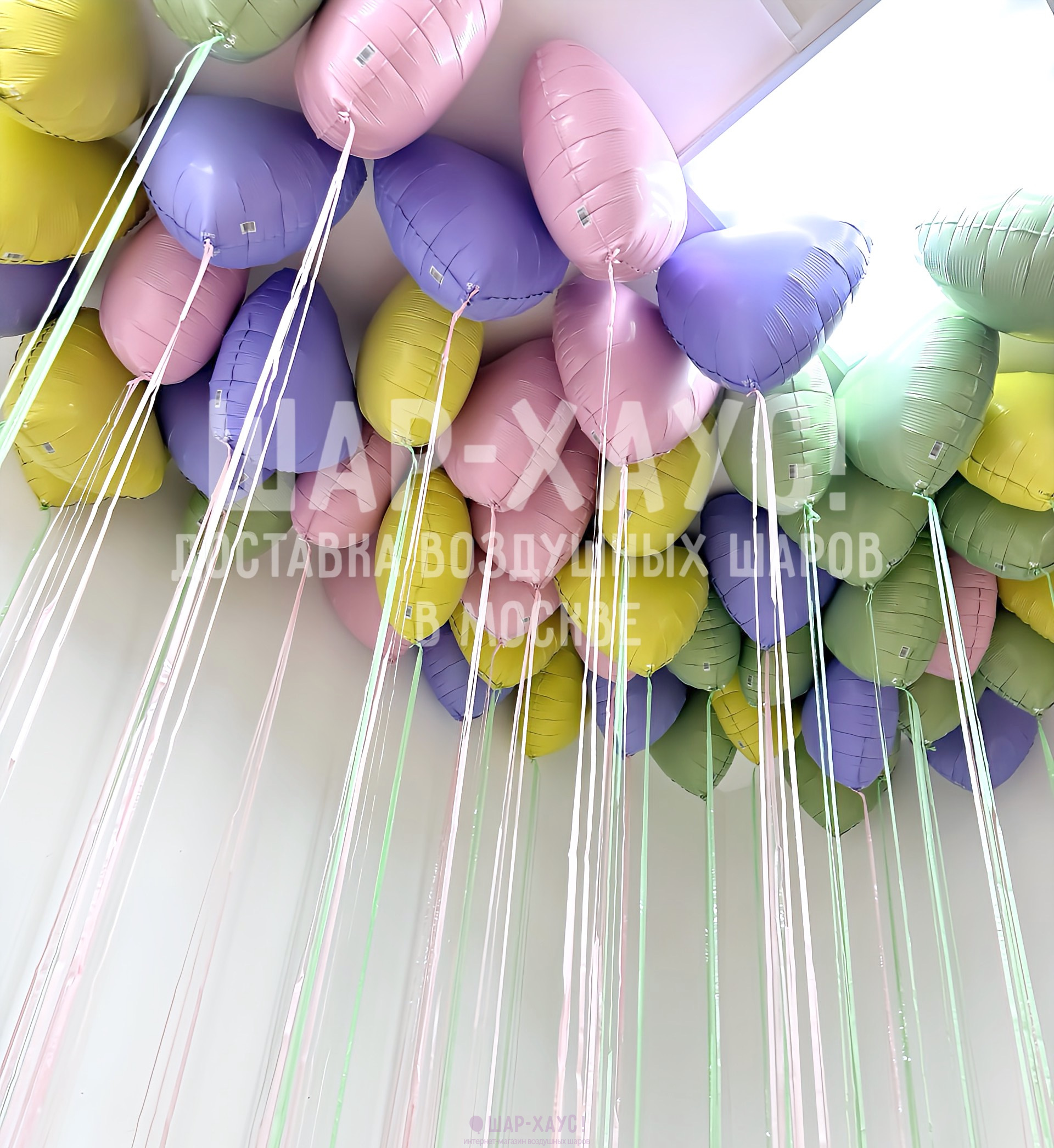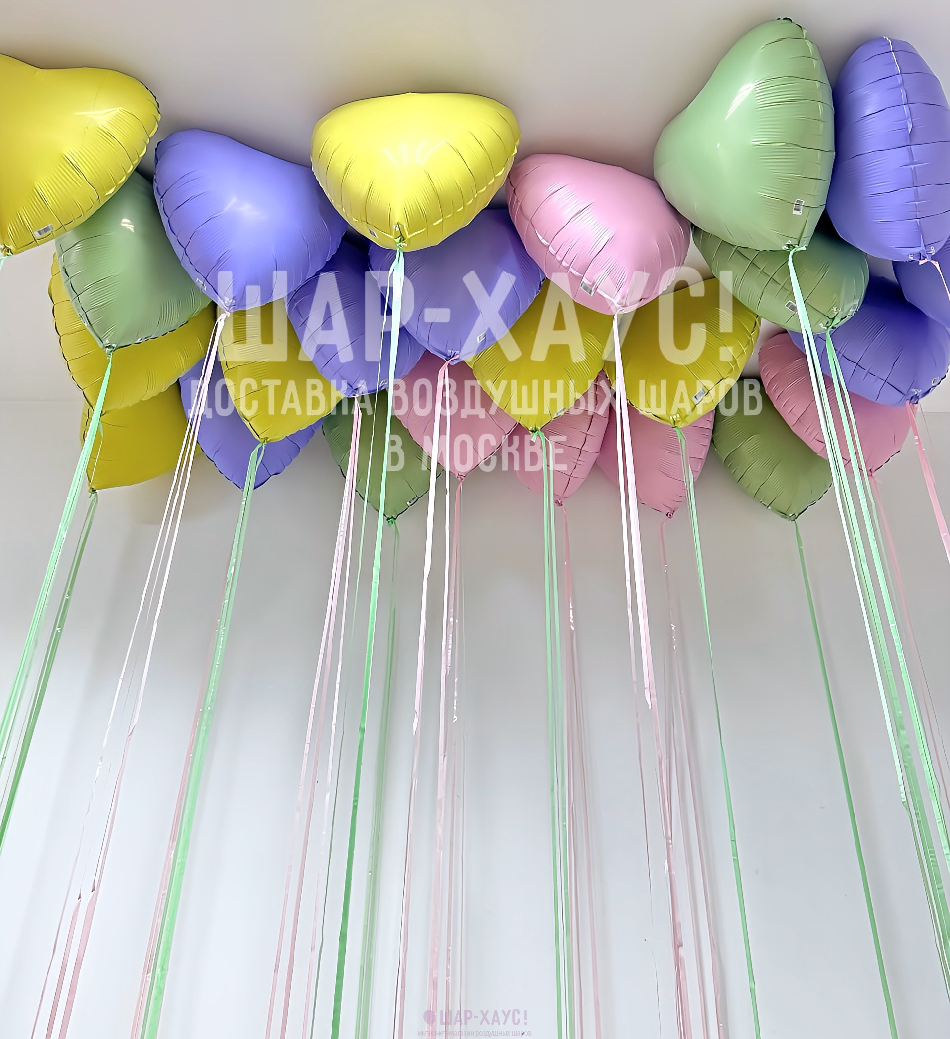 Шары с гелием под потолок "Пастельные сердца с дождиком"