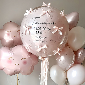 Большие шары на выписку - с пожеланием и метрикой малыша