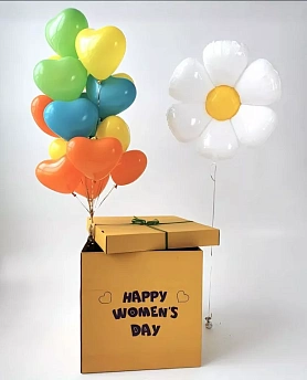 Коробка с воздушными шарами - отличный вариант для любого праздника. Мы наносим надписи любой сложности индивидуально для каждого клиента. Заказать коробку с воздушными шарами можно у нас на сайте. Нужно лишь оформить заказ через корзину и указать желаемую надпись в комментарии.