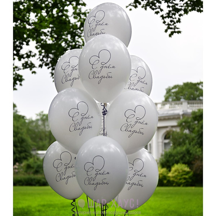 • Латексные воздушные шары с гелием хром и свадебными надписями (35 см)