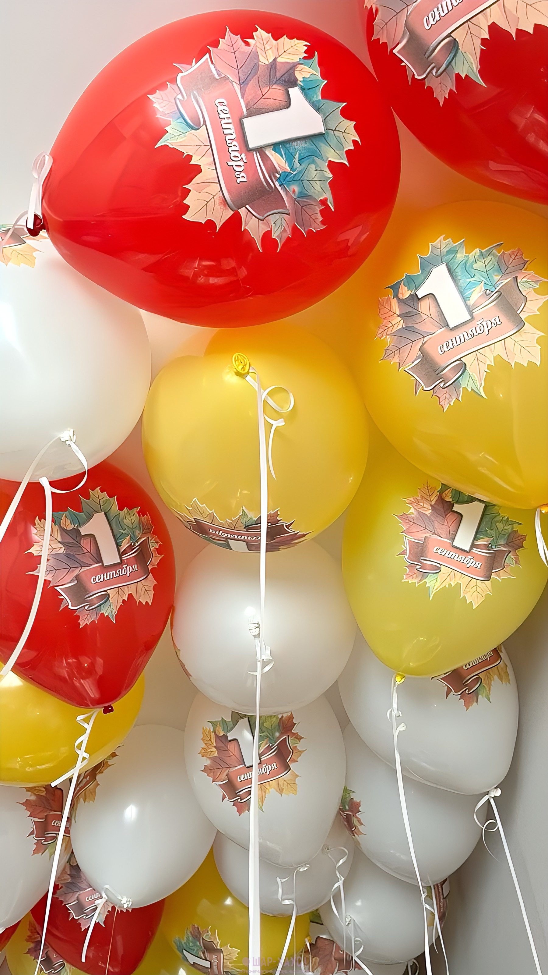 • Латексные воздушные шары с гелием пастель и надписью "1 Сентября" (35 см)