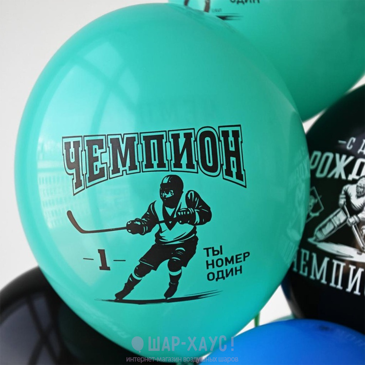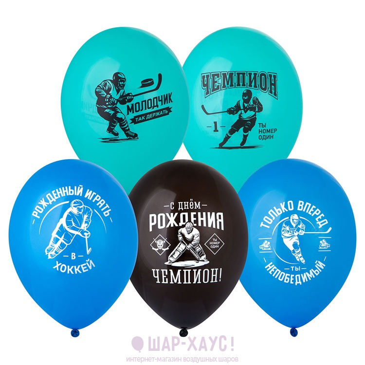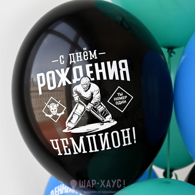 Воздушные шары с рисунками "С ДР Чемпион хоккей"
