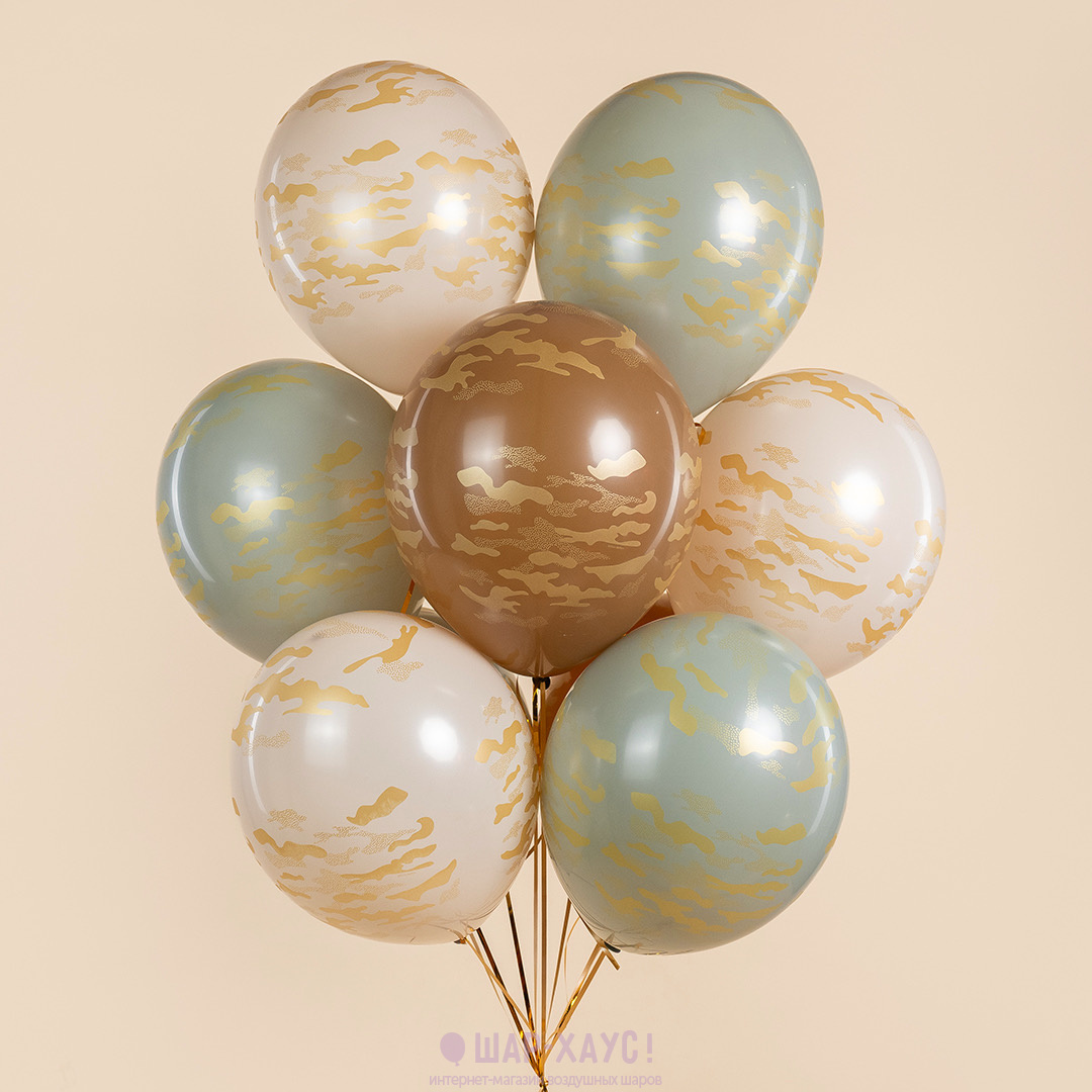Воздушные шары "Золотой камуфляж, Ассорти, пастель"