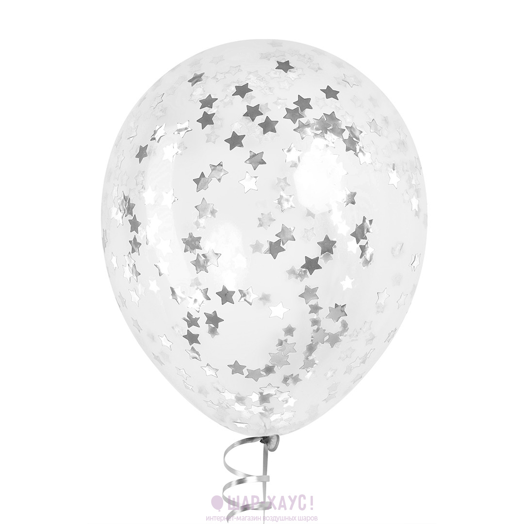 Воздушный шар с конфетти "Серебряные звезды"