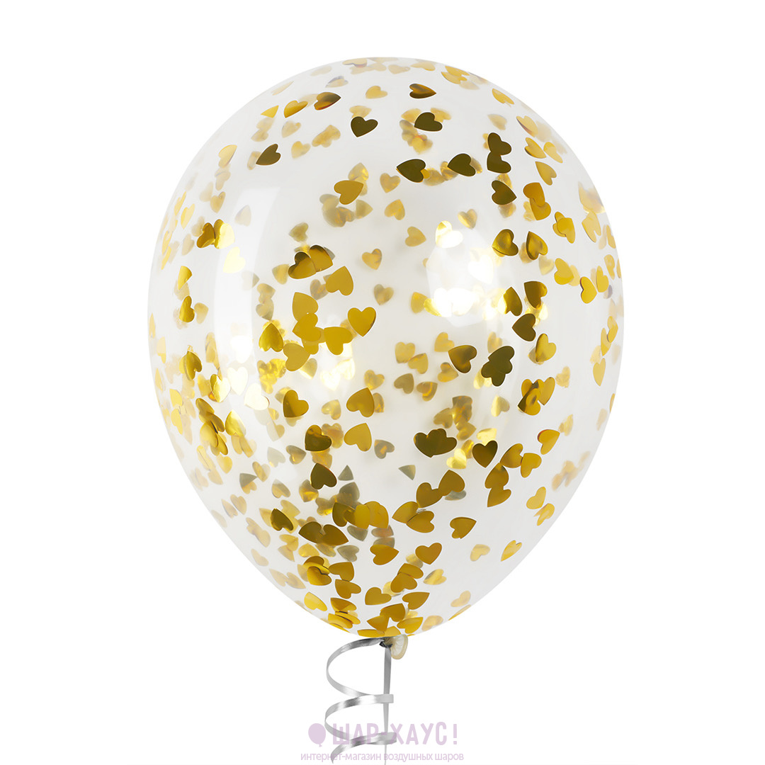 Воздушный шар с конфетти "Золотые сердечки"